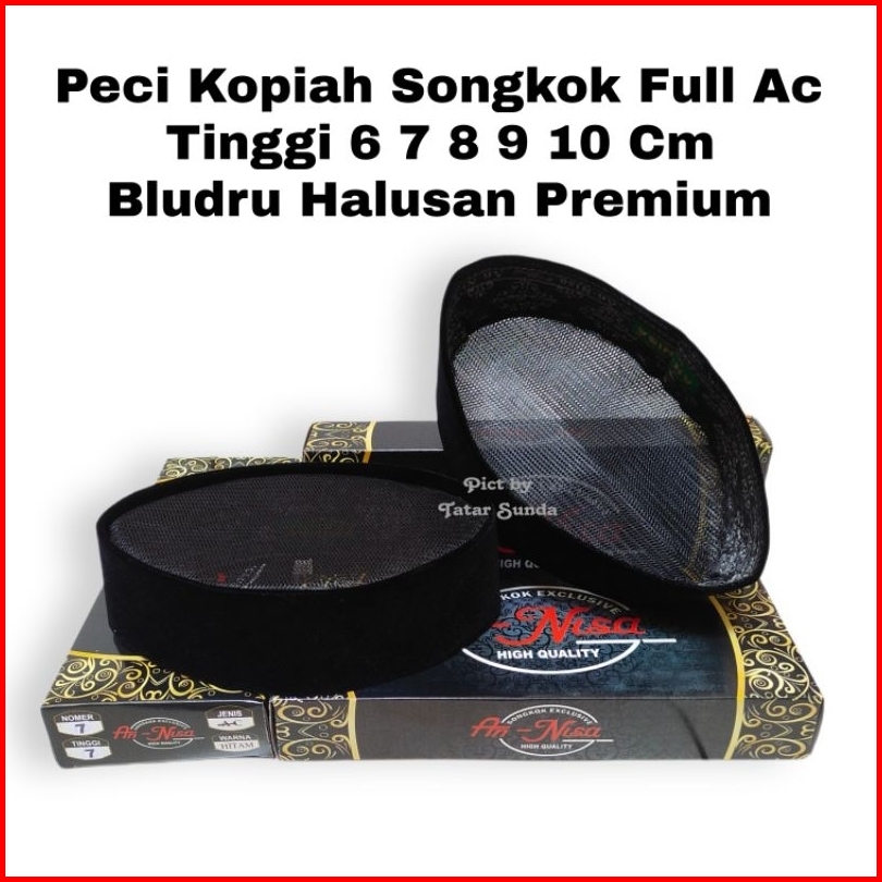 Peci Dewasa Songkok Kopiah Full Ac Tengah Hitam Anak Dewasa Tinggi 6cm 7cm 8cm 9cm 10cm Bludru Halus Merk An-nisa