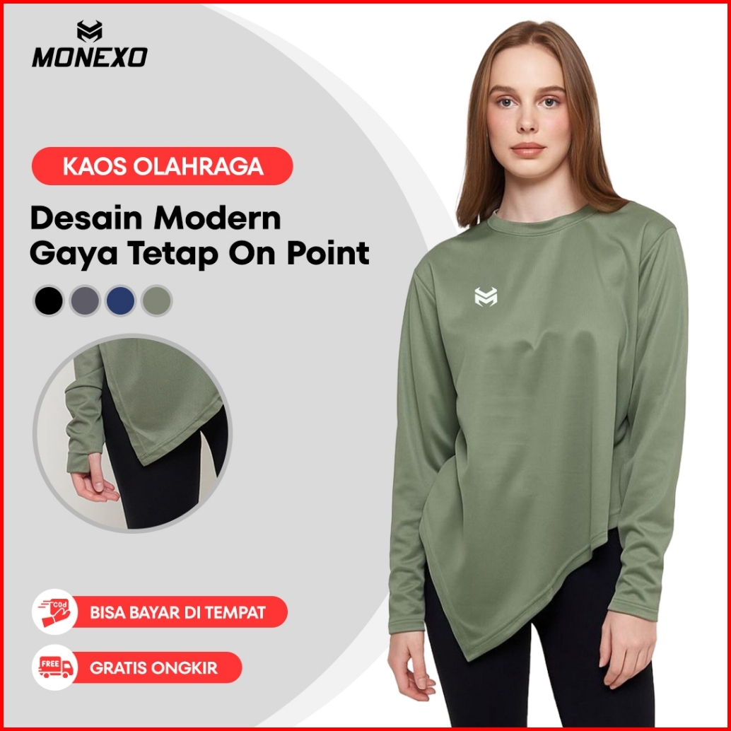 Monexo - Run15 Baju Olahraga Wanita Lengan Panjang Hijab Sport T-shirt Yoga Oversize