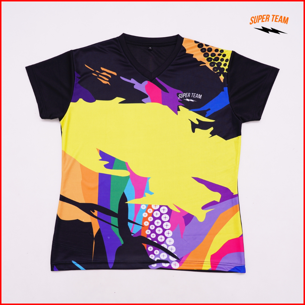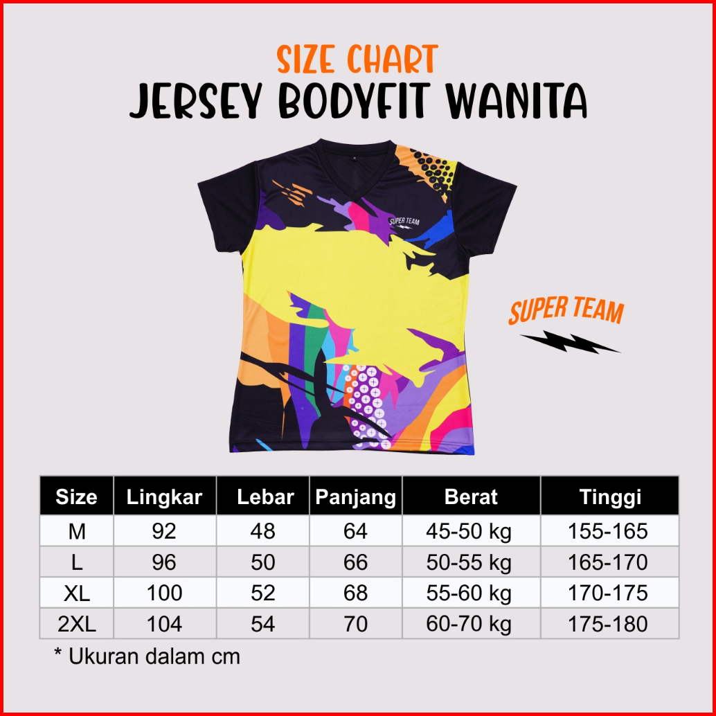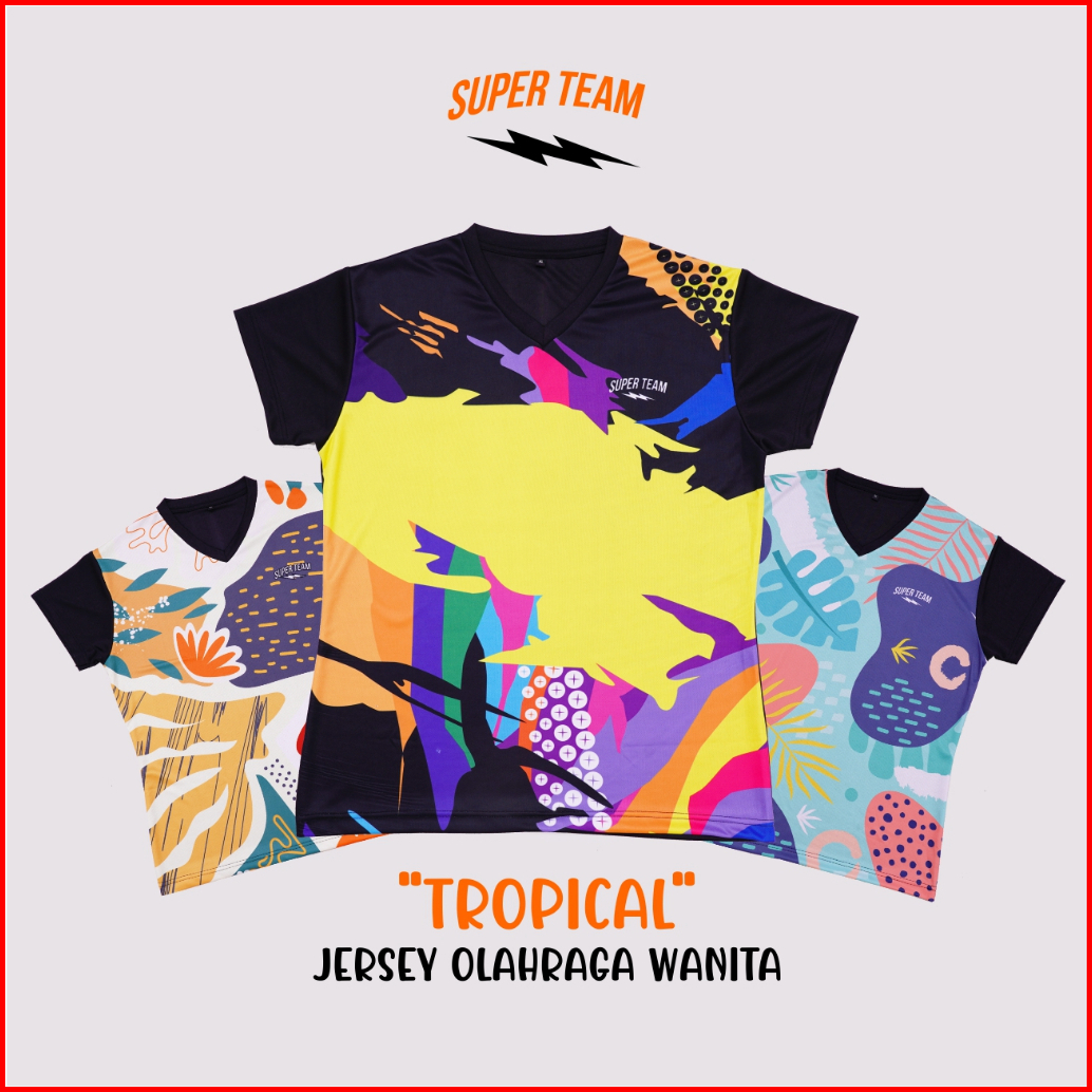 Super Team Baju Olahraga Wanita Full Printing Motif Tropical Jersey Wanita Volly Badminton Senam
