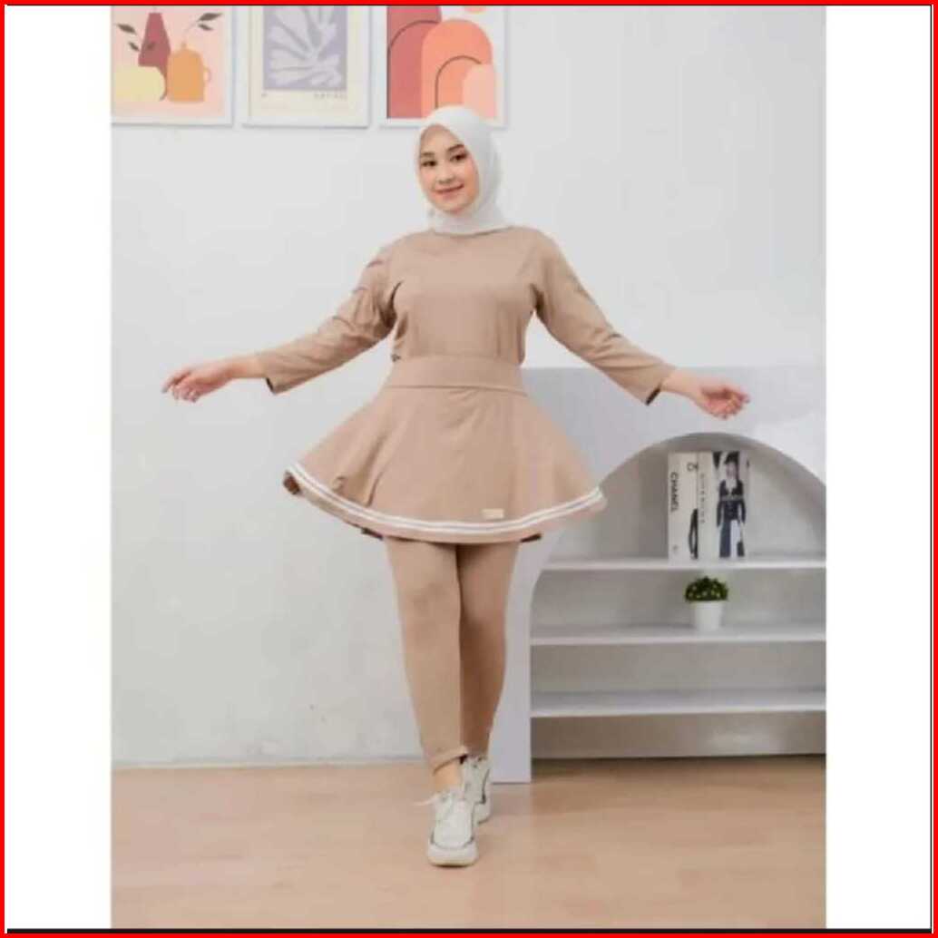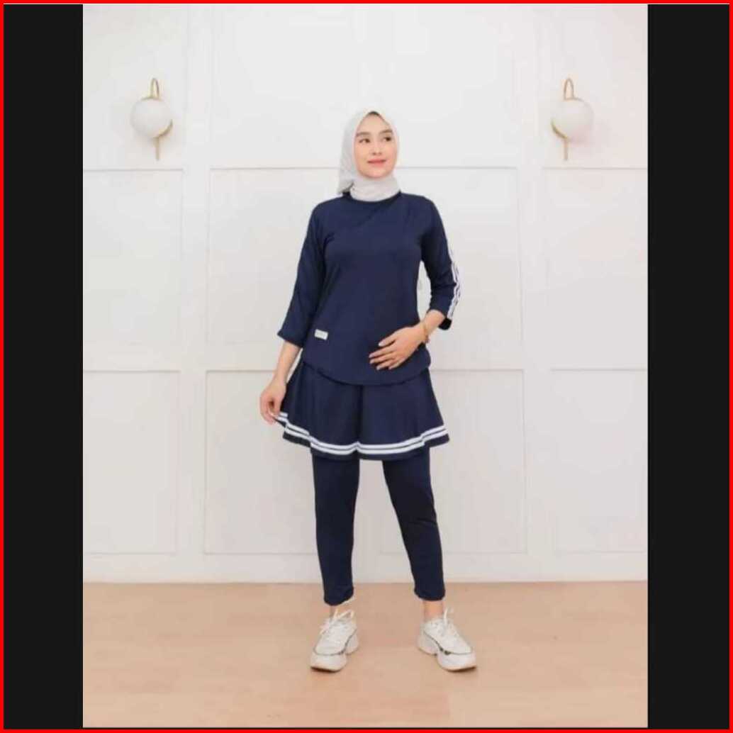 Setelan Kaos Olahraga Wanita Muslimah New Olivia Set Training Babyterry Lengan Panjang