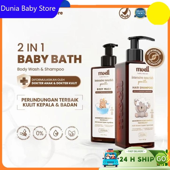 Moell Gentle Body Wash 185gr & Shampoo - 2in1 Baby Bath Sabun & Sampo Bayi Anak Kulit Kering & Sensitif