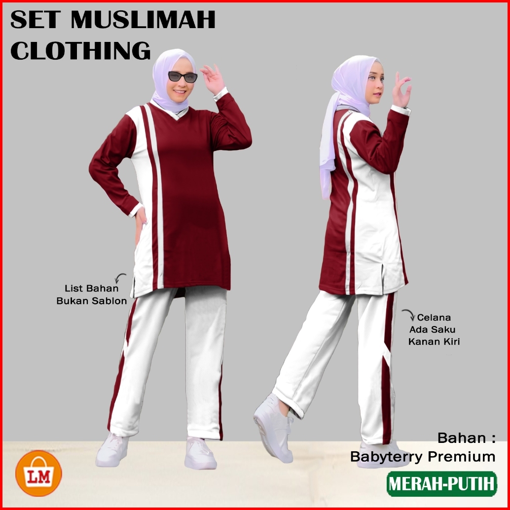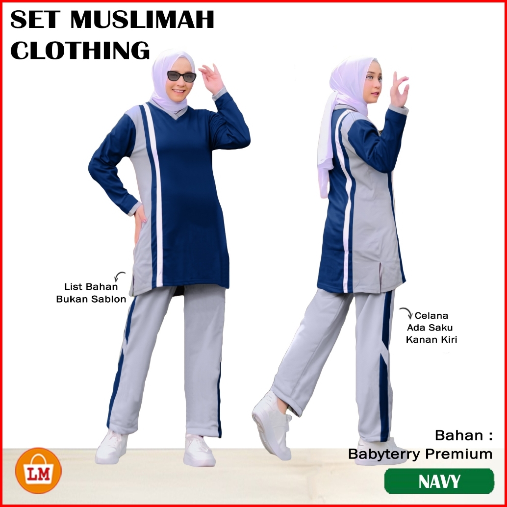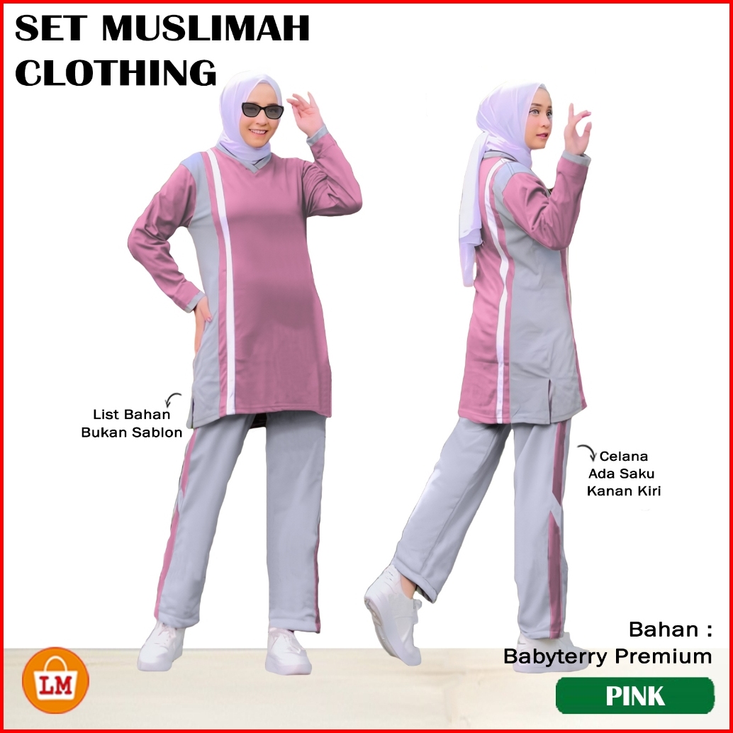 Set Muslimah Clothing Setelan Training Olahraga Wanita Muslimah Lengan Panjang Bahan Babyterry Size L Xl Xxl Xxxl Adem M