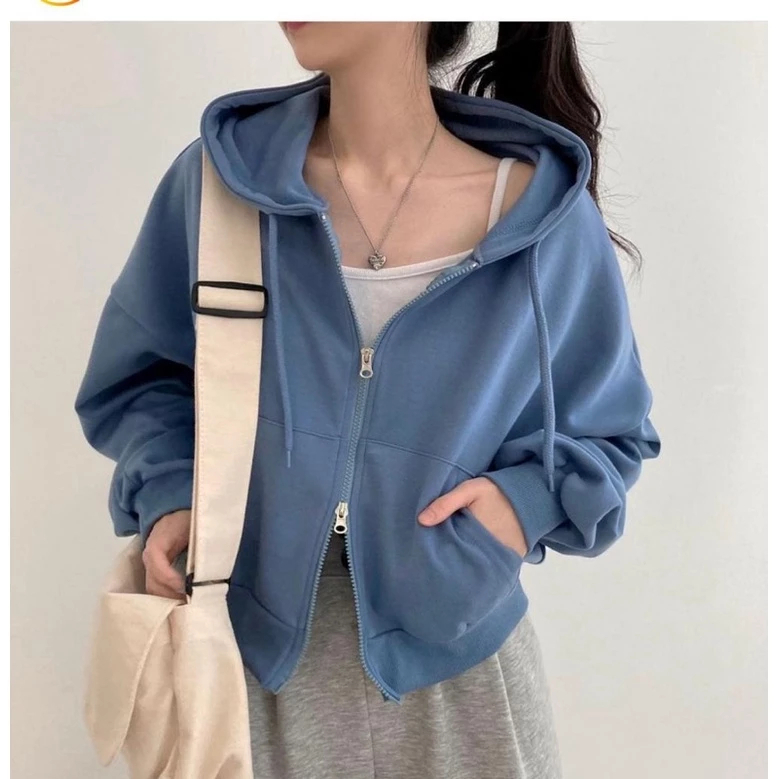 Jaket Wanita Korea Style Basic Double Zipper Motif Polos Lengan Panjang Premium Terlaris Murah