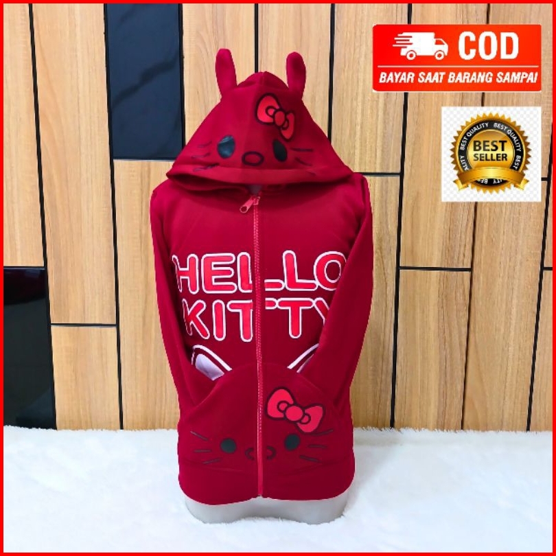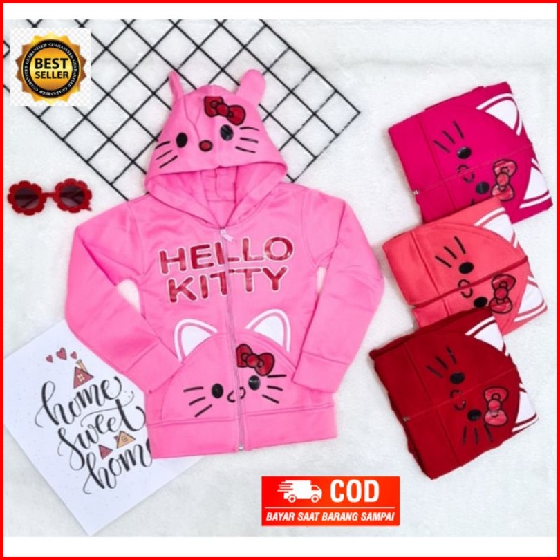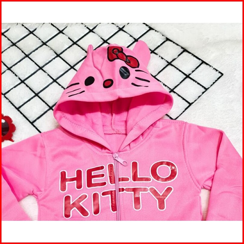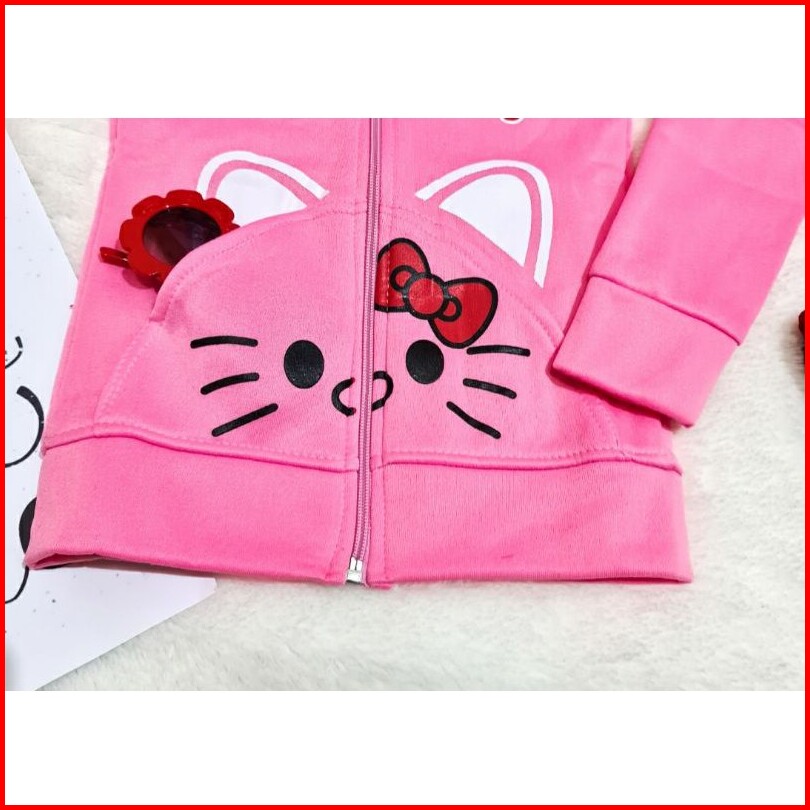 Jaket Anak Cewek Fleece Hoodie Kuping Kitty Pita