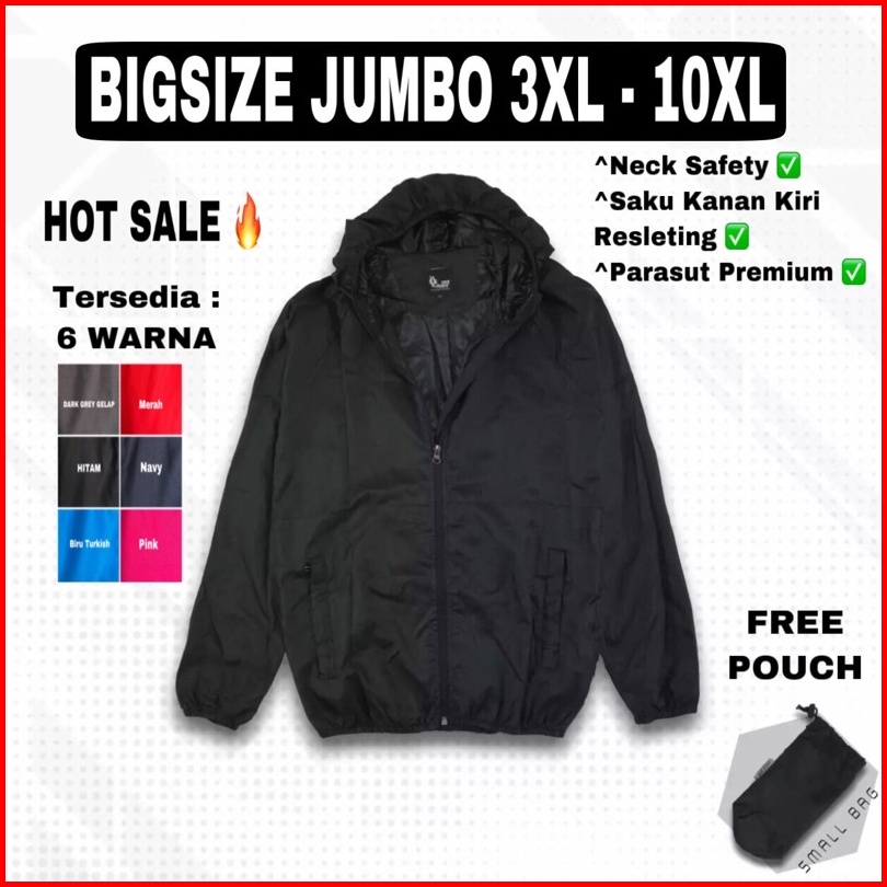 Jaket Jumbo Big Size Besar 3xl Sampai 10xl Jaket Running Lari Jogging Sepeda Gym Olahraga Parasut Ringan Simple Berkuali