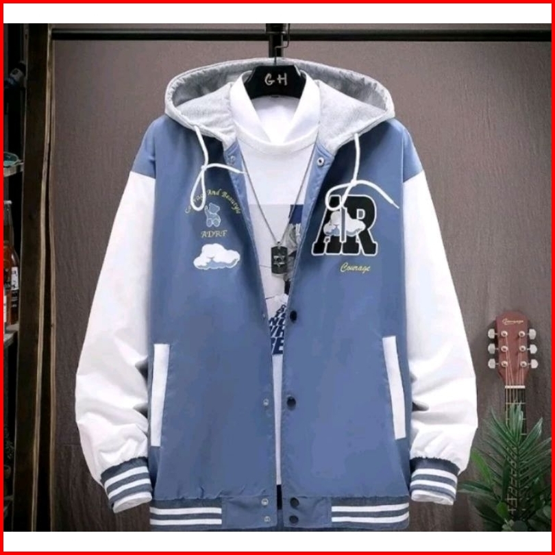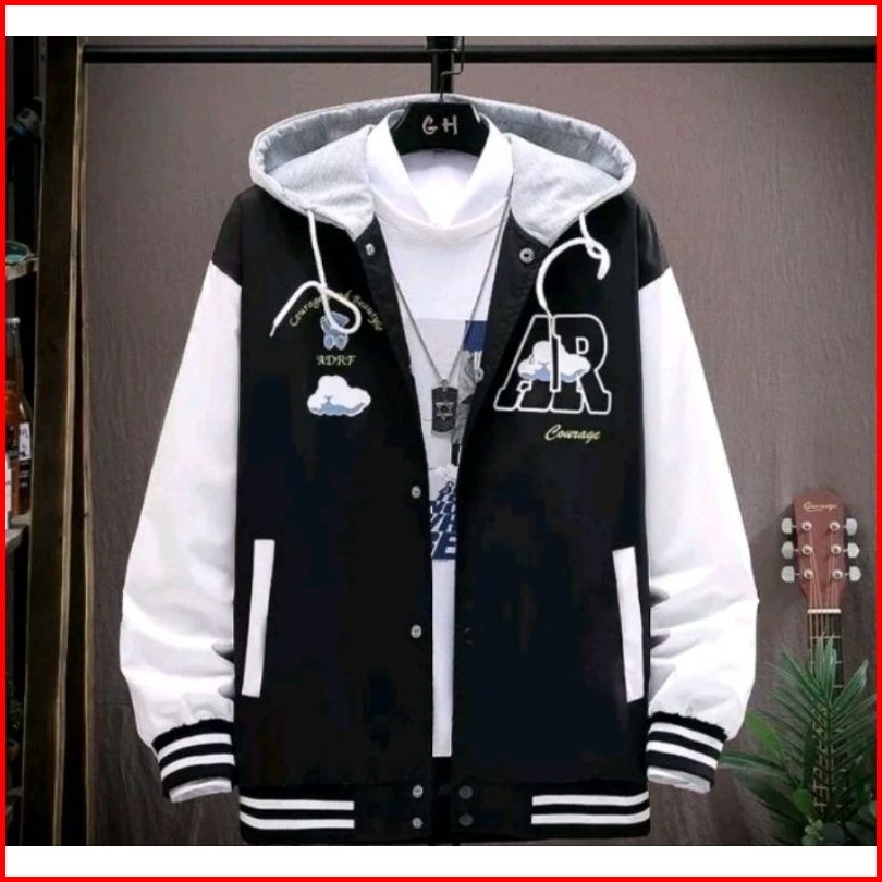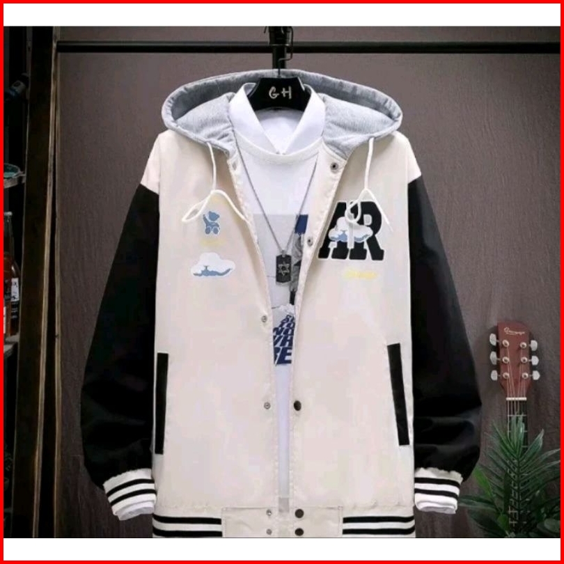 Jaket Baseball Hoodie Oversize Ar Cloud Jaket Varsity Oversize Pria