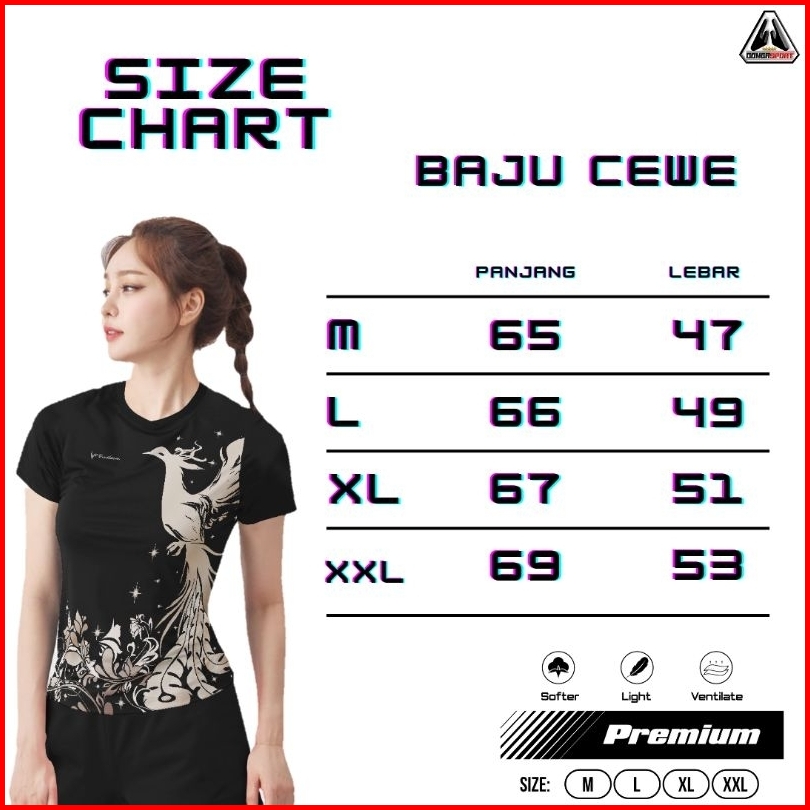 Bcw Wins Phoenix Baju Olahraga Premium Cewe Baju Badminton Wanita Baju Volly Cewek Print Phoenix