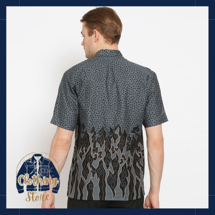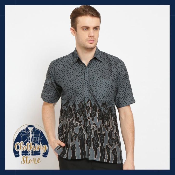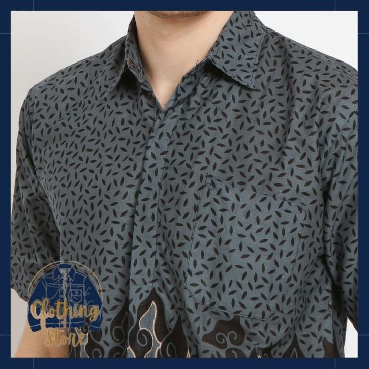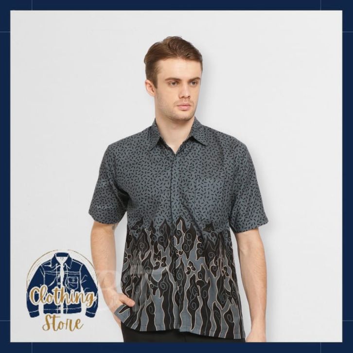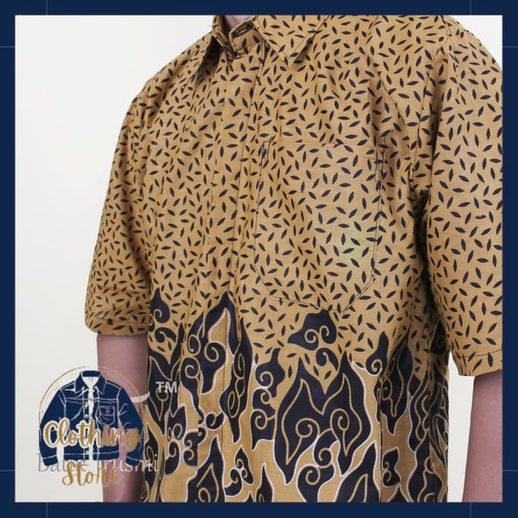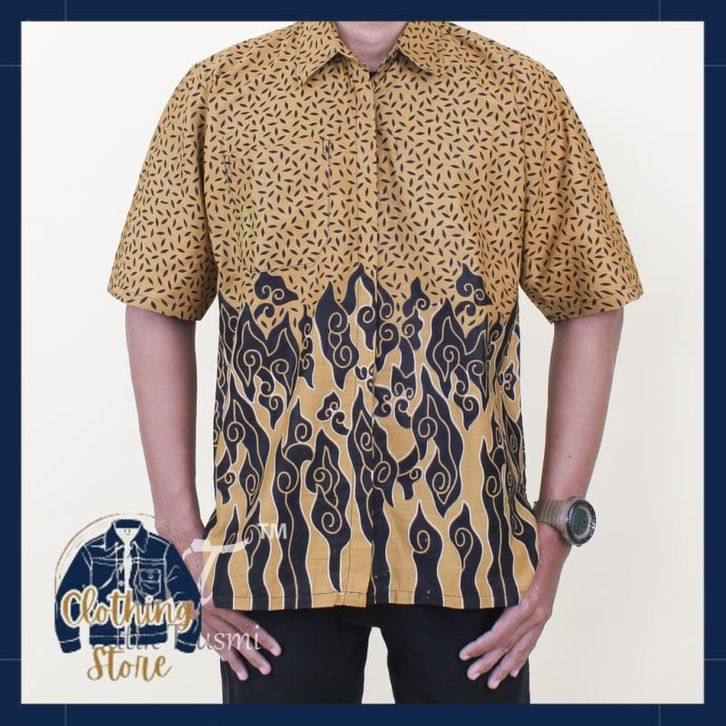 Baju Batik Hem Pria Kemeja Pria Lengan Pendek Batik Mega Mendung Kombinasi Beras Tumpah Murah Seragaman