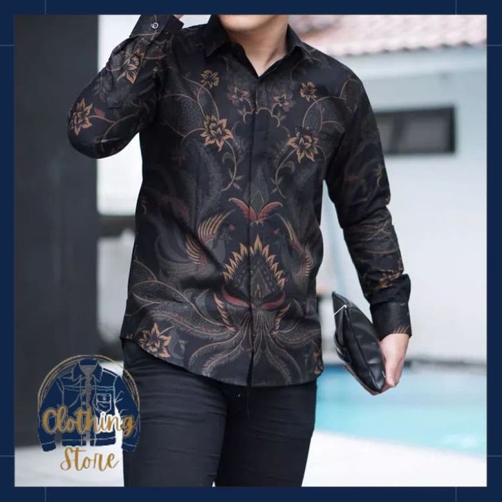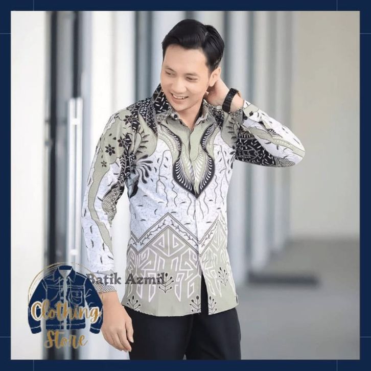 Batik Pria Lengan Panjang BATIK AZMIL motif KERATONAN Kode 003 size M L XL XXL Reguler