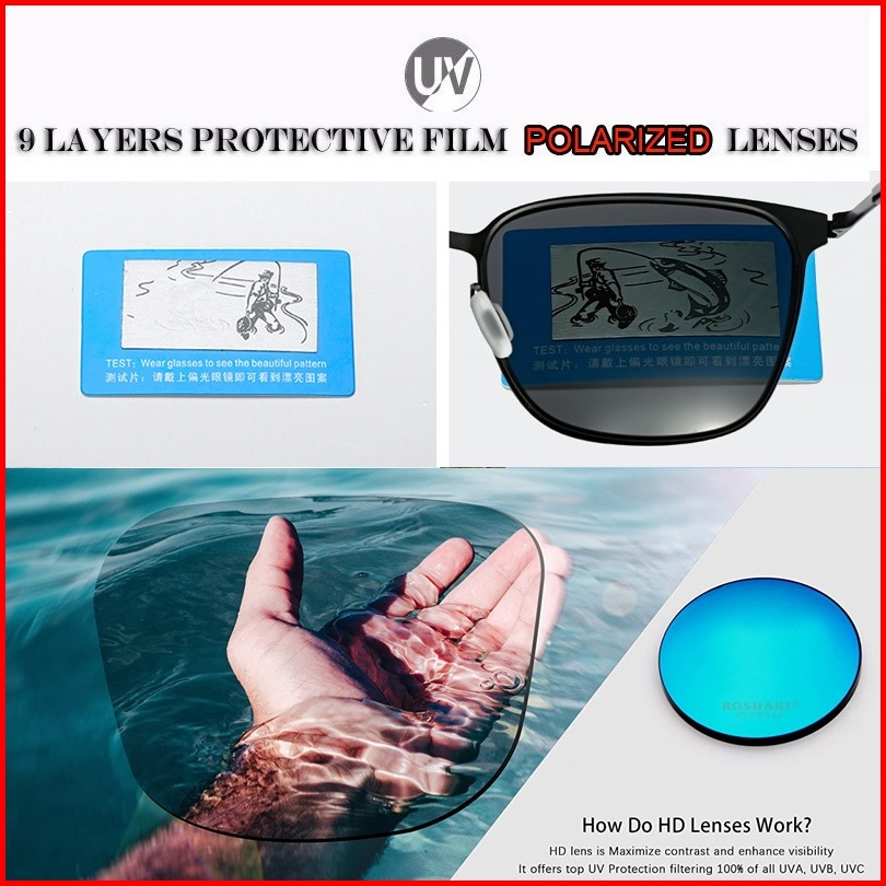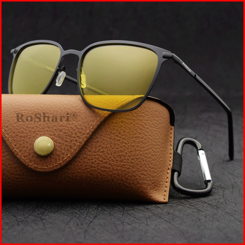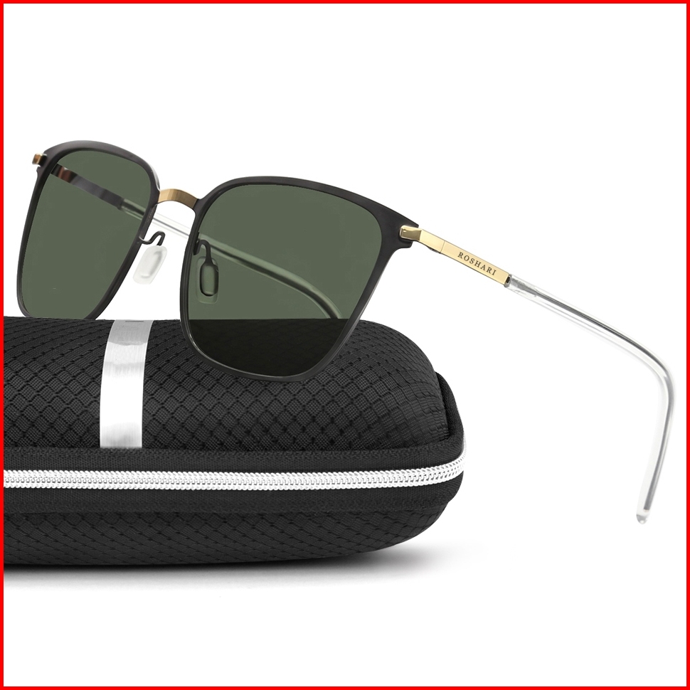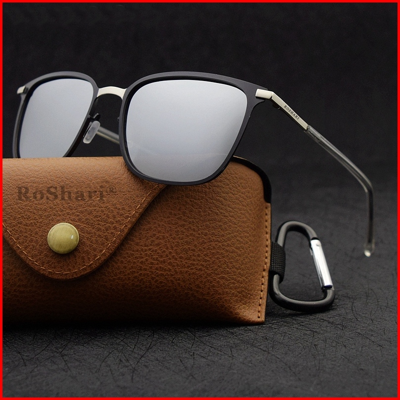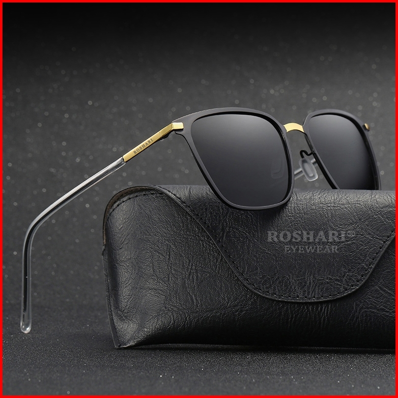 Roshari R001 Kacamata Hitam Pria Sunglasses Metal Square Polarized Anti Glare Uv400