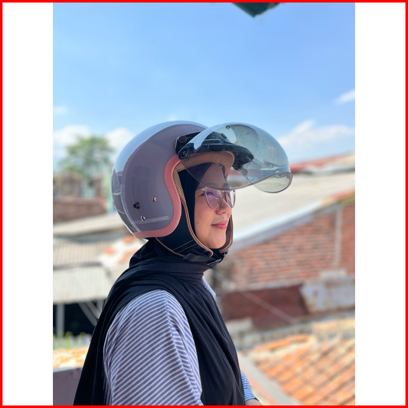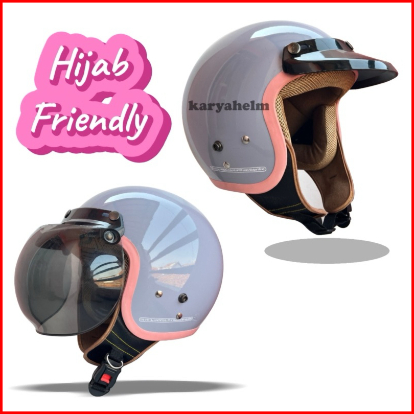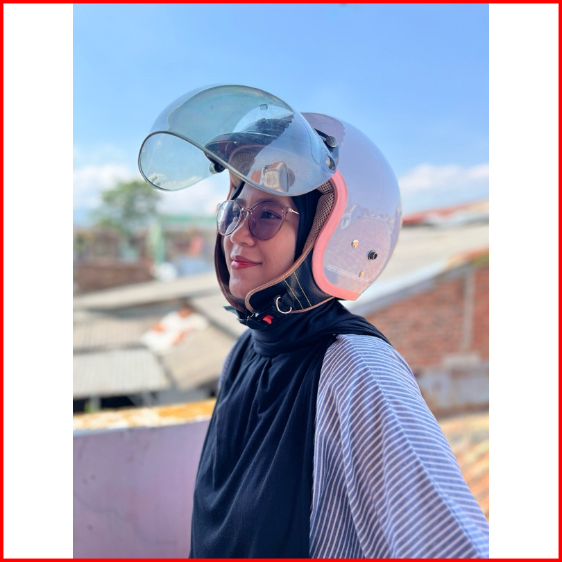 Helm Bogo Hijab Wanita Sni List Pink Busa Premium