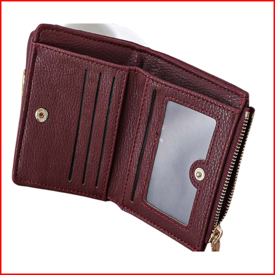 Dompet Lipat Wanita Kecil Kulit Maroon Rixia Wa823m2 Premium Cewek Murah Slot Kartu Resleting Koin Korea Kekinian Remaja