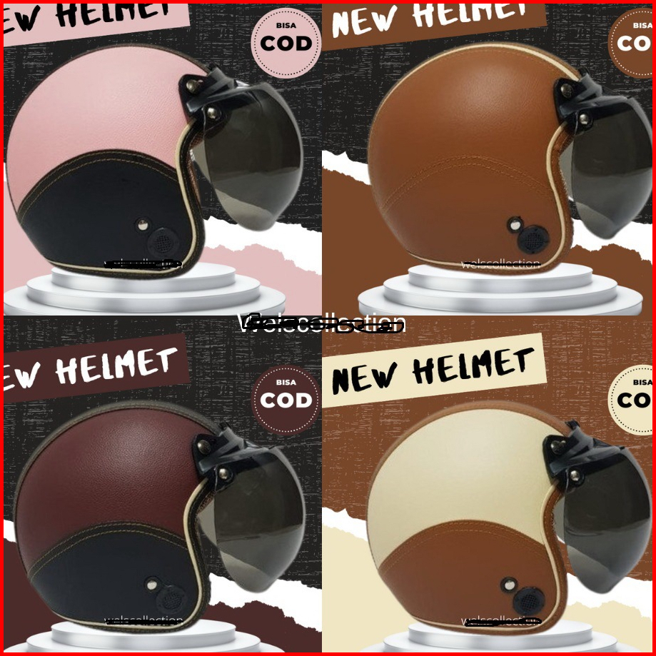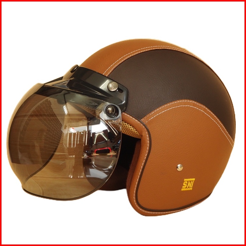 Helm Bogo Classic Bahan Kulit Sintetis Motif Jeruk Sni Dewasa Pria Dan Wanita Boggo Retro Klasik Glossy Kaca Datar Cembu