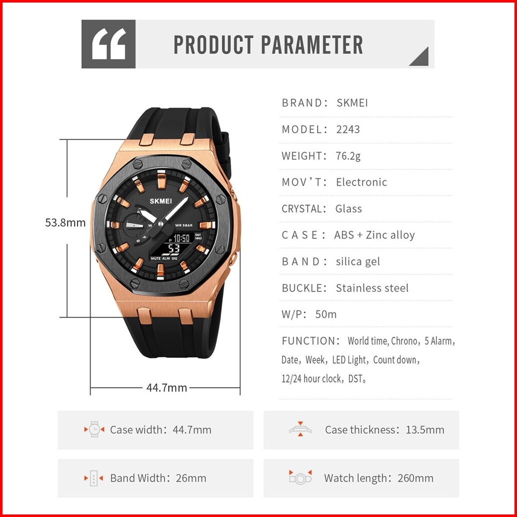 Jam Tangan Pria Analog Digital Skmei 2243 Rubber Original Tahan Air