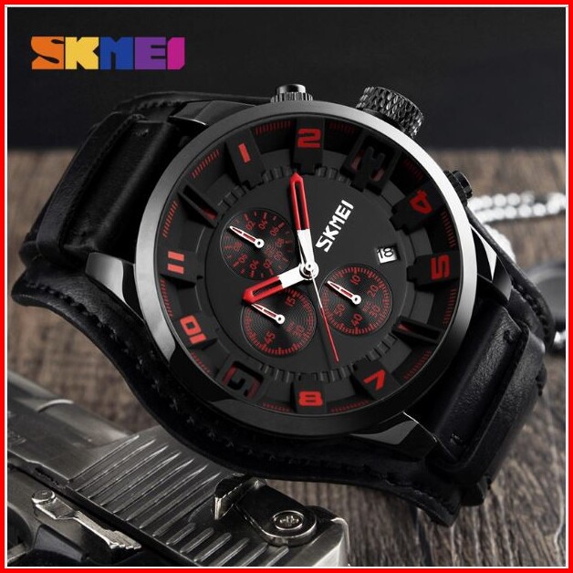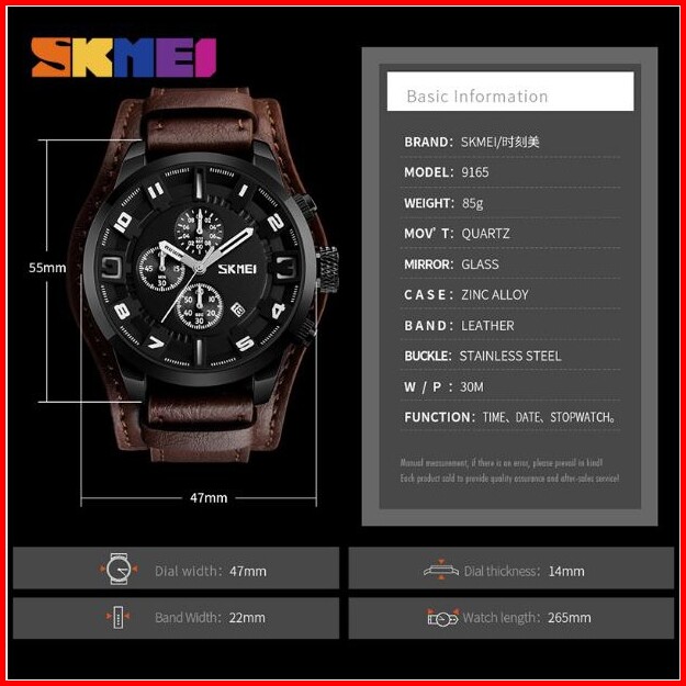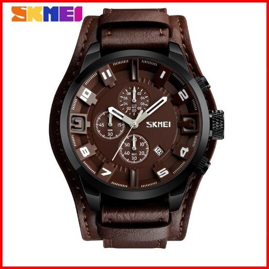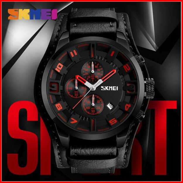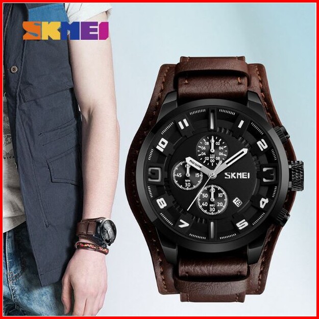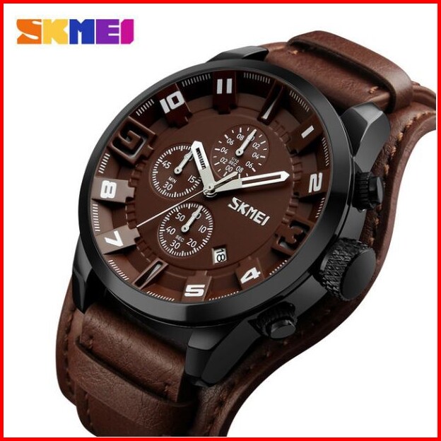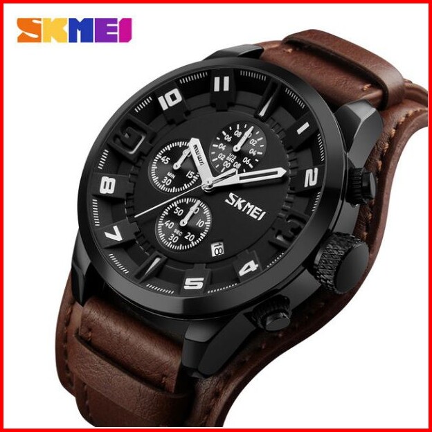 Skmei 9165 Jam Tangan Pria Analog Chronograph Tali Kulit Mgos