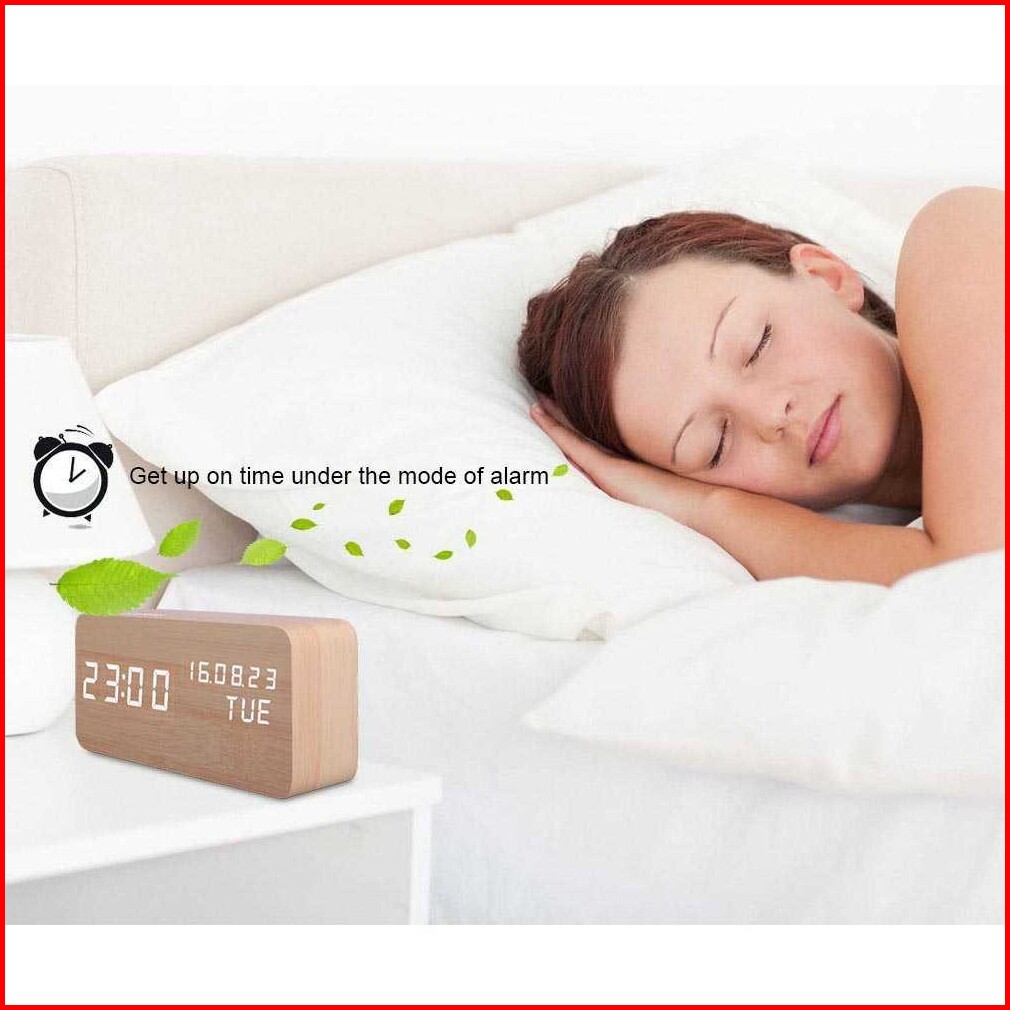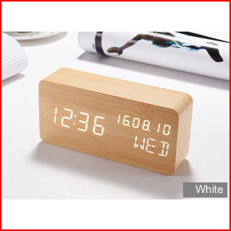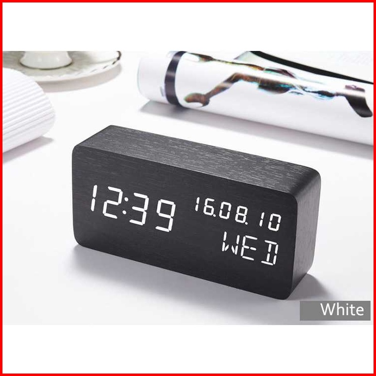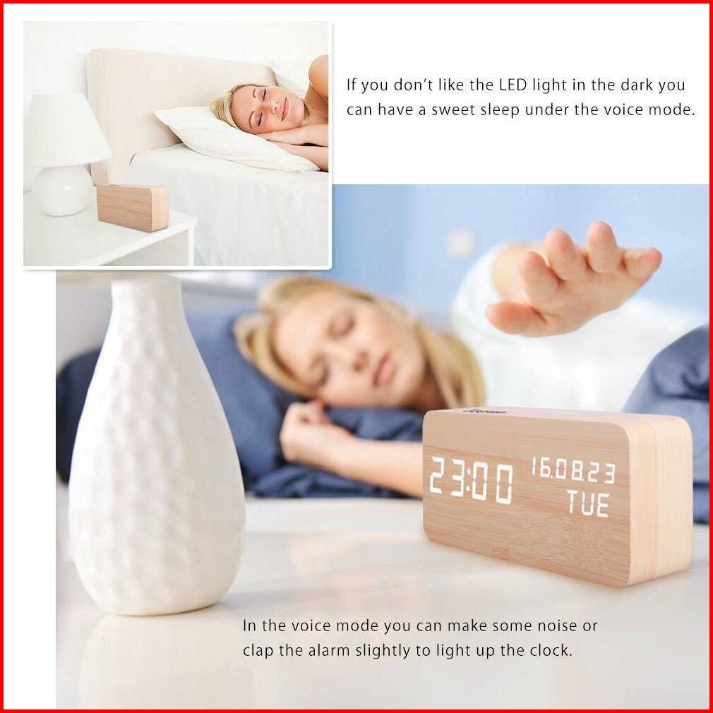 Ready Jam Alarm Led Wood Clock Sensor Suara Jam Meja Digital Motif Kayu