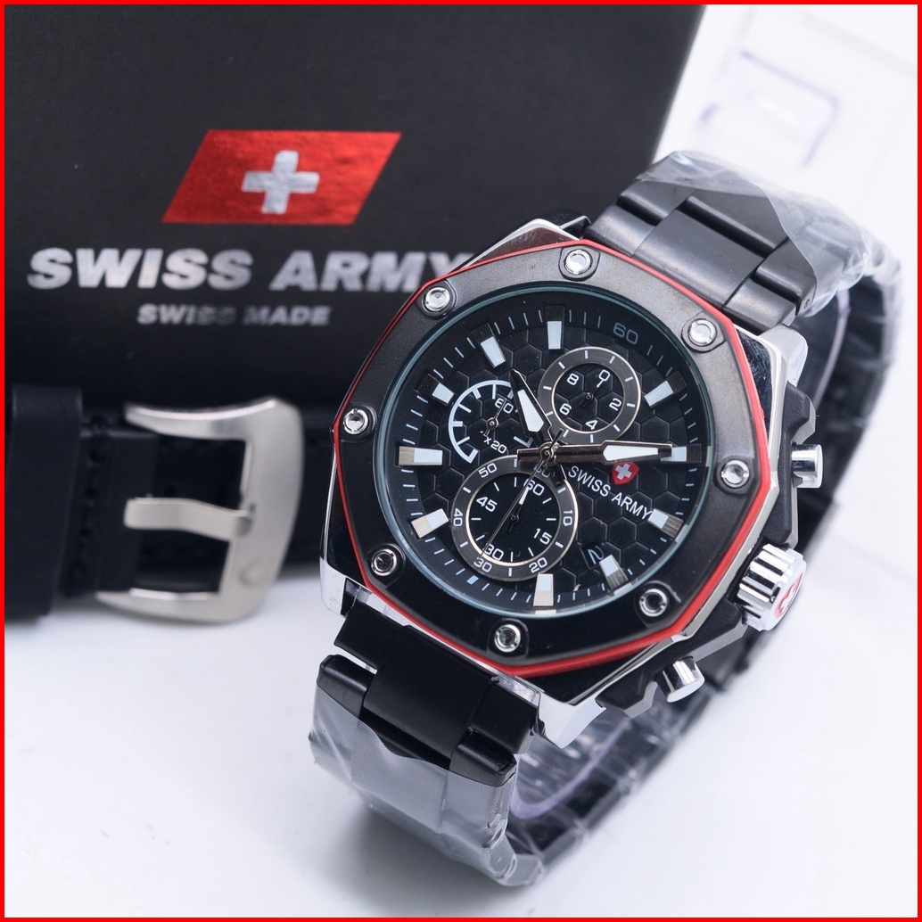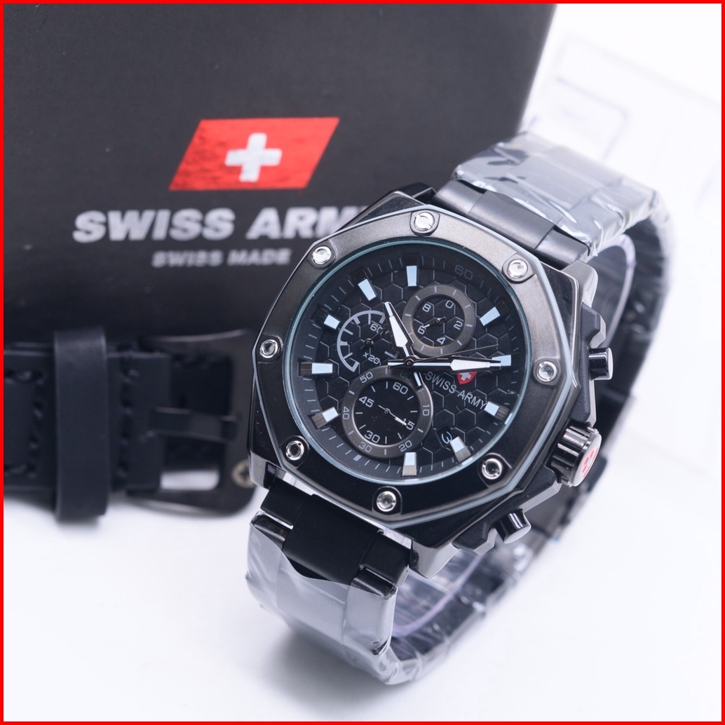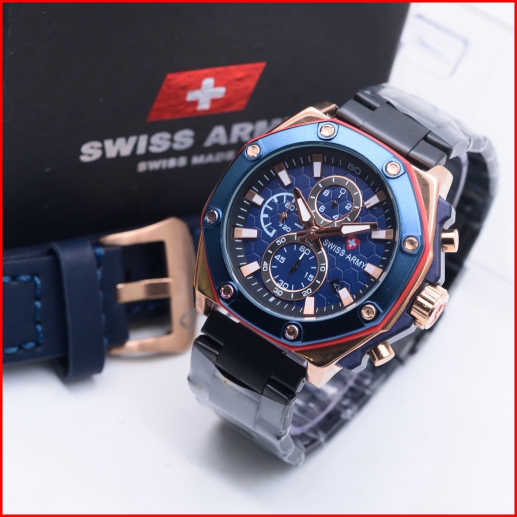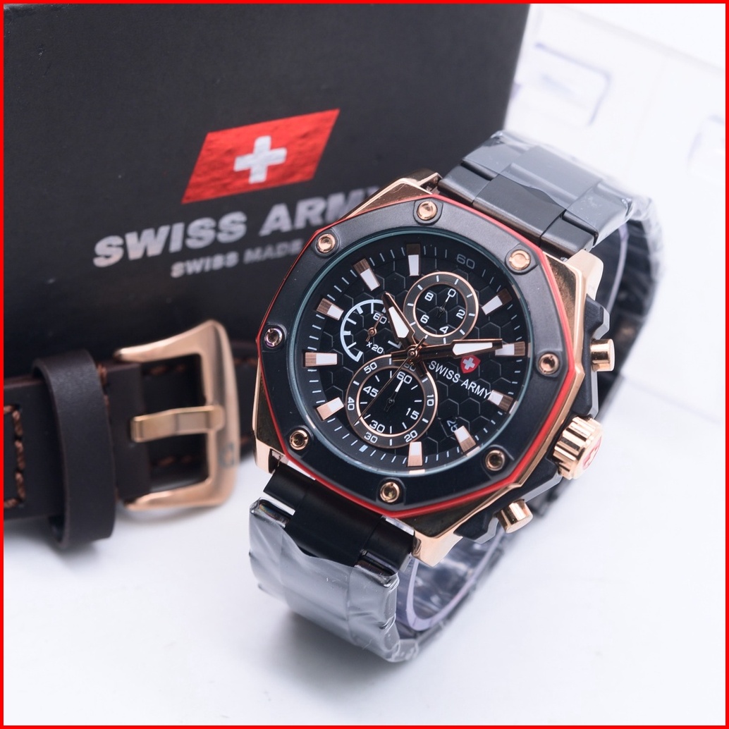 Jam Tangan Pria Super Sporty Chronograph Rantai Free Strap Kulit 3022