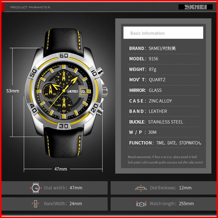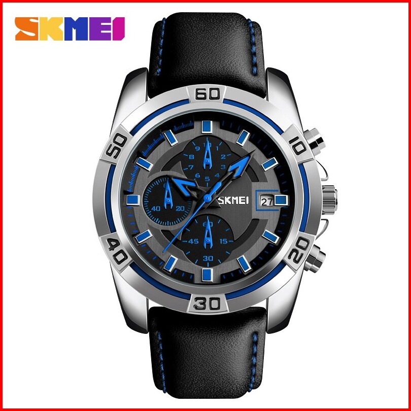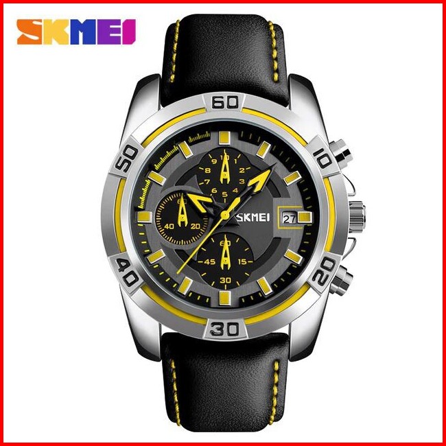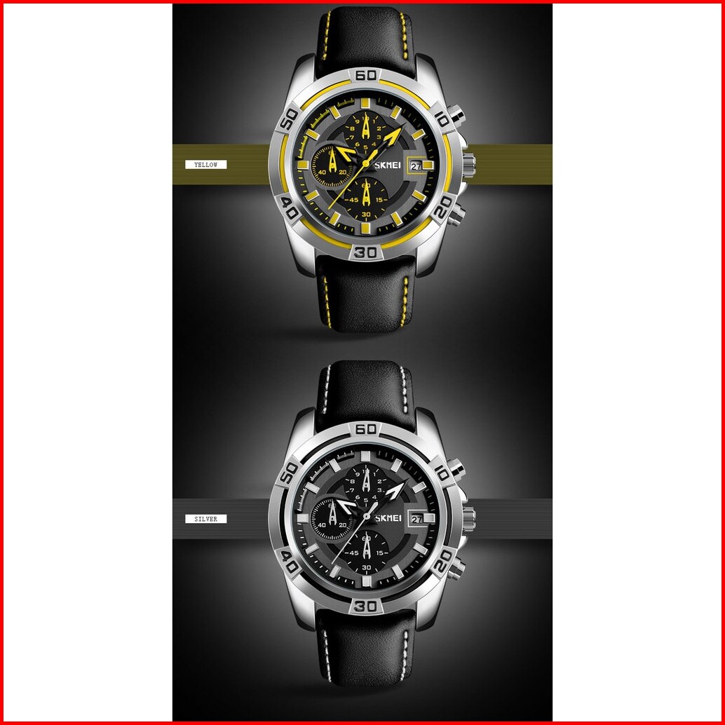 Skmei 9156 Jam Tangan Pria Analog Chronograph Tali Kulit Watchkite Wkos