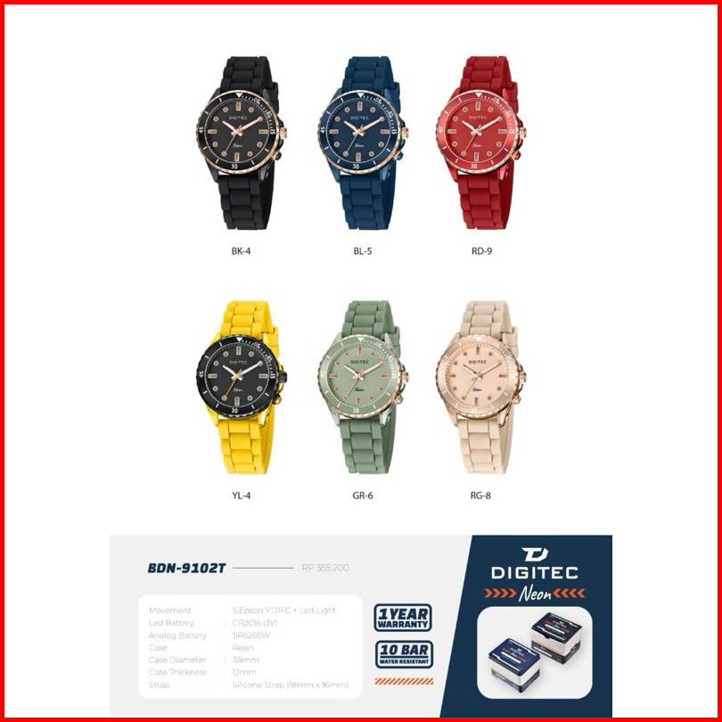 Jam Tangan Wanita Digitec Dg-9102 9102 Neon Ada Lampu Original Rubber Tali Karet Jam Tangan Fashion Cewek