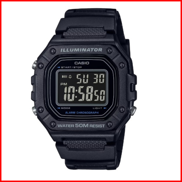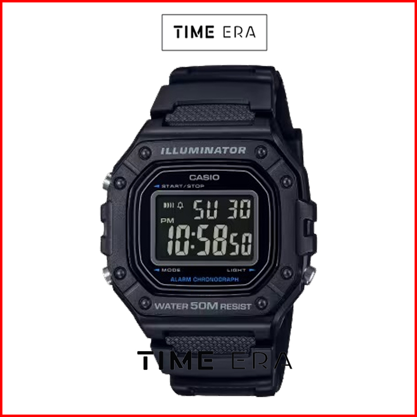 Casio General W-218h-1bvdf W218h-1bvdf 1b Jam Tangan Pria Digital Karet Hitam