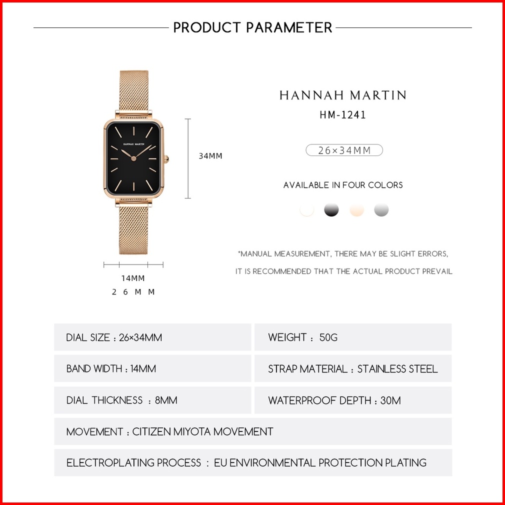 Hannah Martin Jam Tangan Wanita 100 Original Fashion Cewek Tahan Air Quartz Arloji 1241