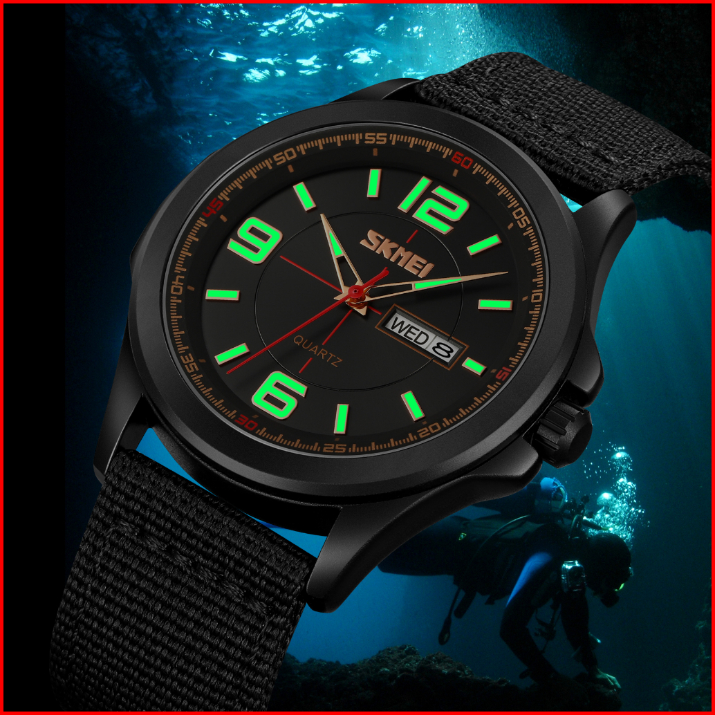 Skmei 9315 Jam Tangan Pria Analog Chrono Tali Nilon Watchkite Wkos