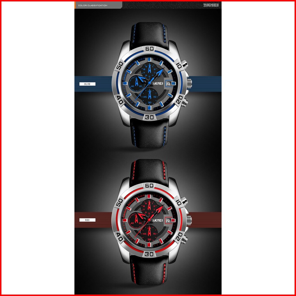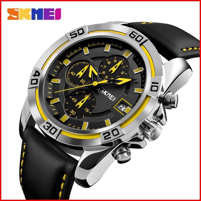 Skmei 9156 Jam Tangan Pria Analog Chronograph Tali Kulit Mgos