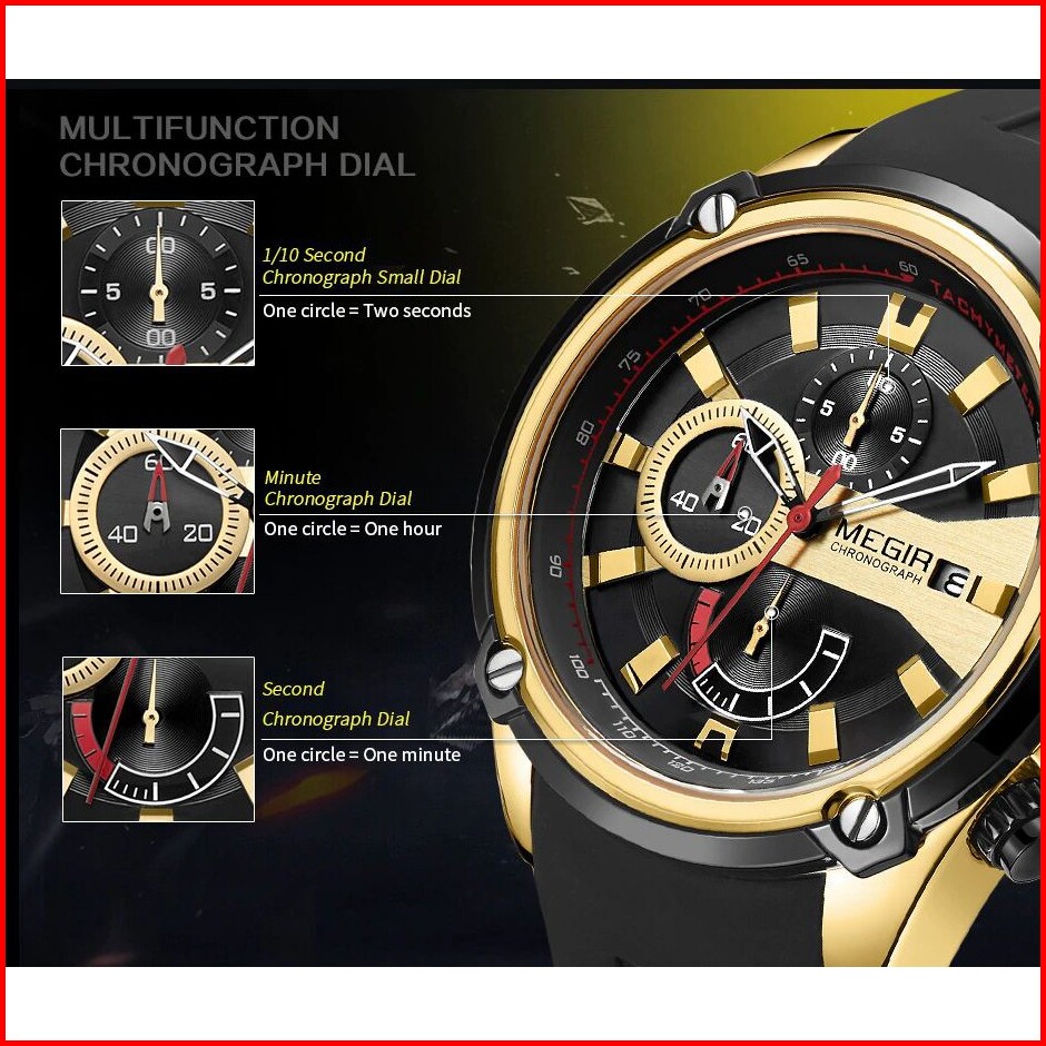 Megir 2086 Jam Tangan Pria Analog Chronograph Tanggal Aktif Mgos