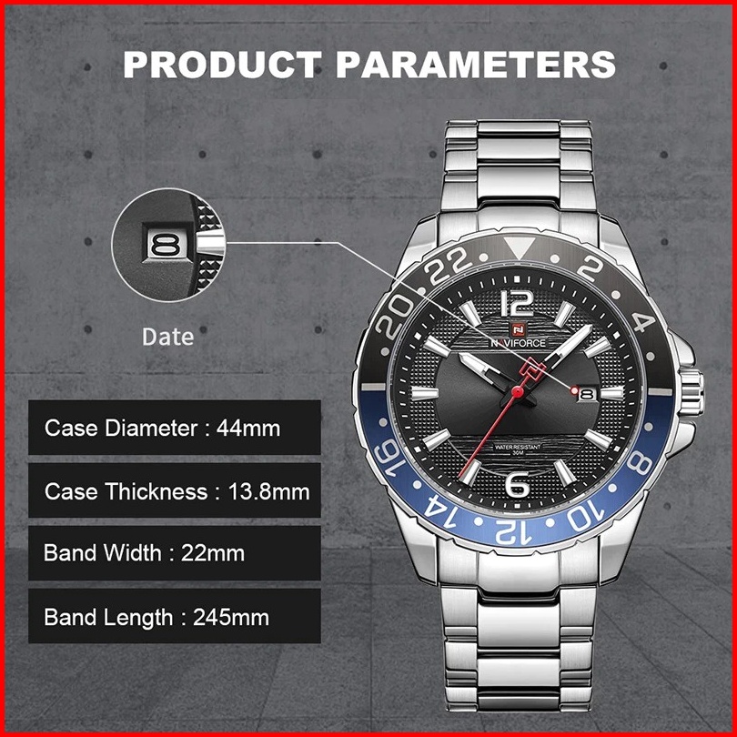 Jam Tangan Naviforce 9192 Nf9192 Anti Air Luminous Strap Rantai Stainless Jam Tangan Pria Original Garansi 1 Tahun Jam T