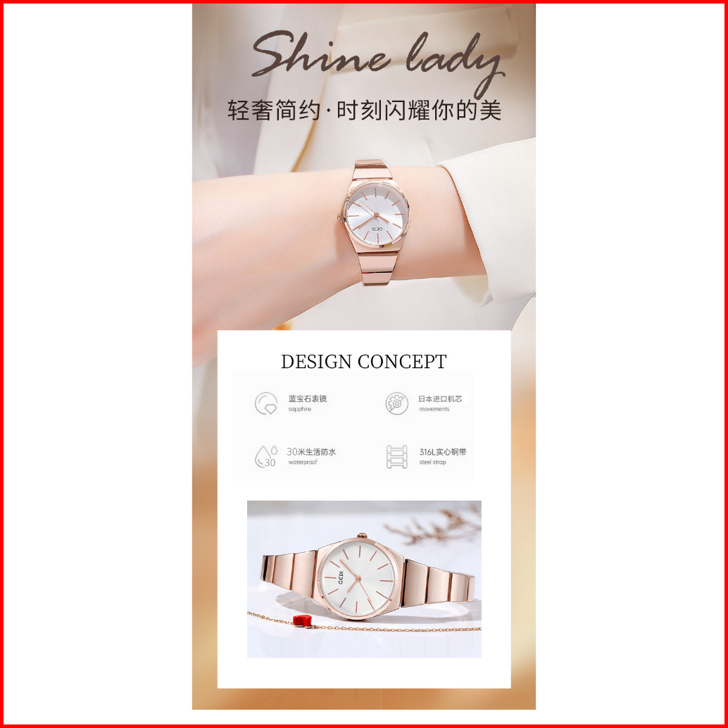 Gedi Jam Tangan Wanita Rantai Stainless Steel Jam Analog Tahan Karat 68113