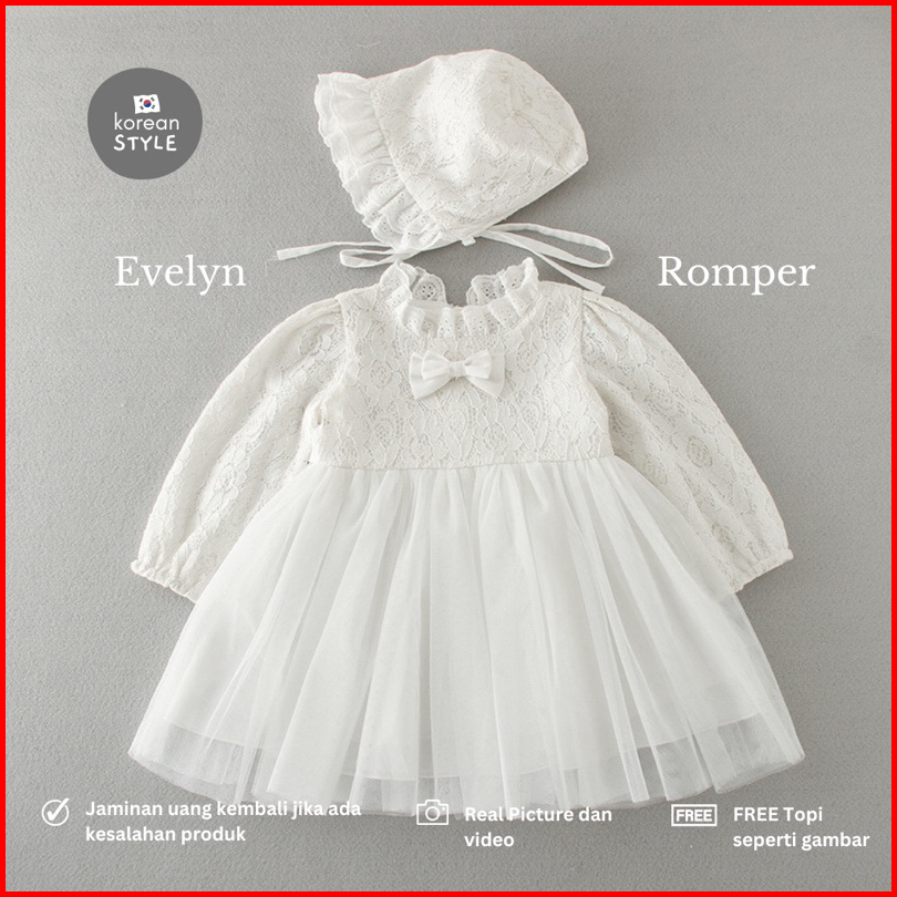 Babychan - Evelyn Romper Dress - Baju Baptis Bayi - Baju Aqiqah Bayi Baju Pesta Bayi Perempuan