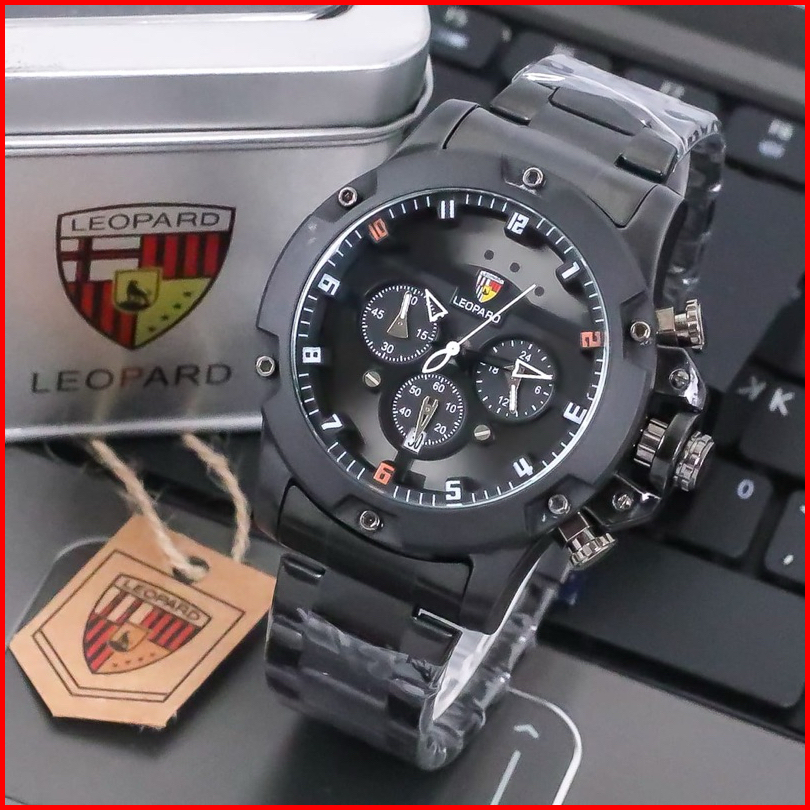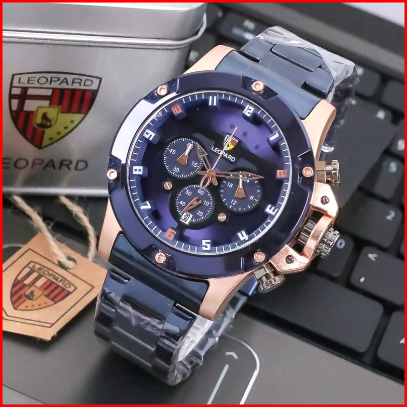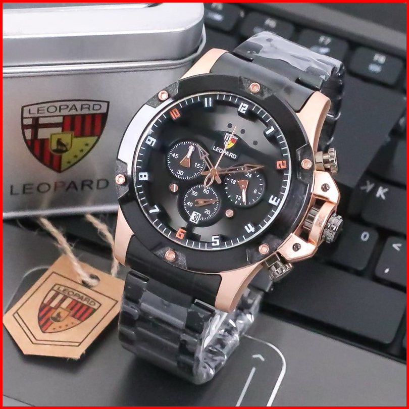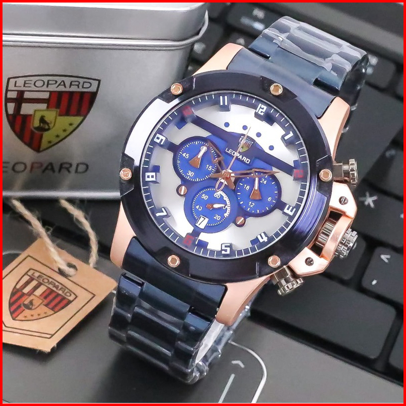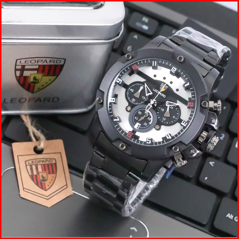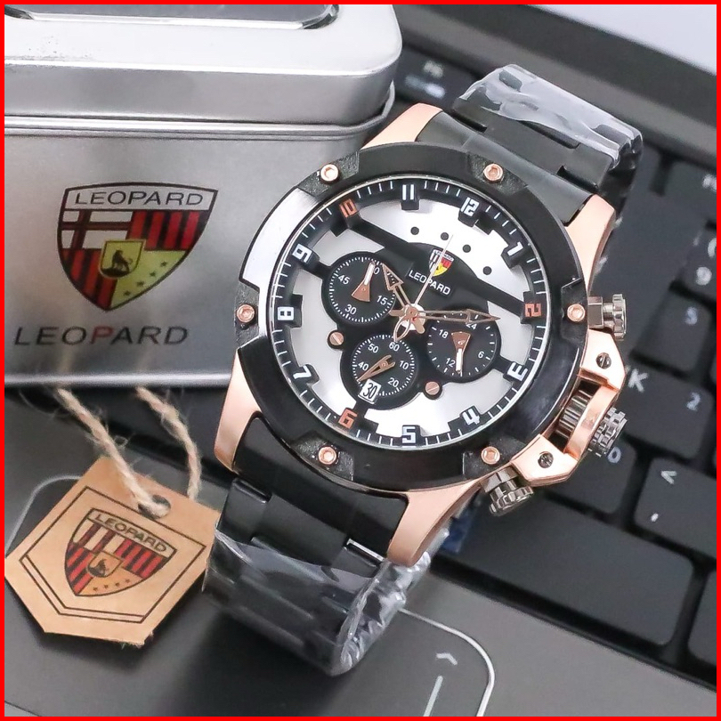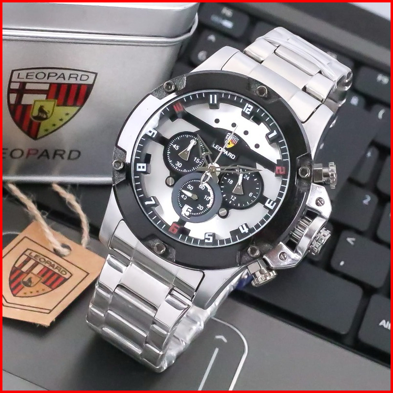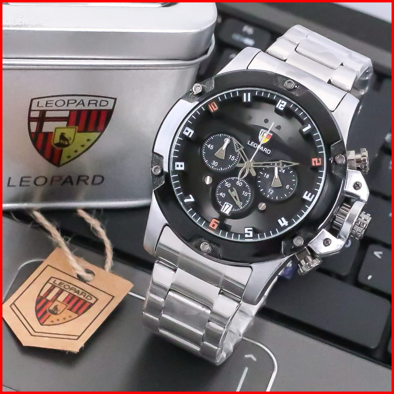Jam Tangan Pria Leopard L-8804 Rantai Stainless Steel Chrono Tanggal Aktif Jam Tangan Fashion Cowok