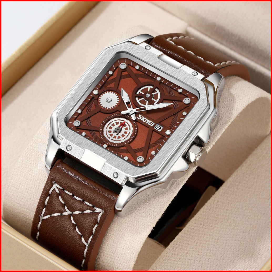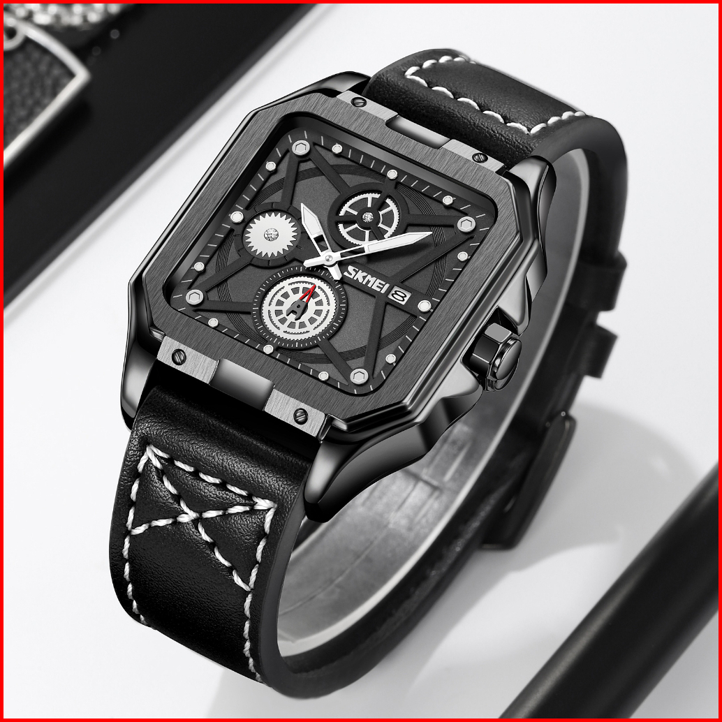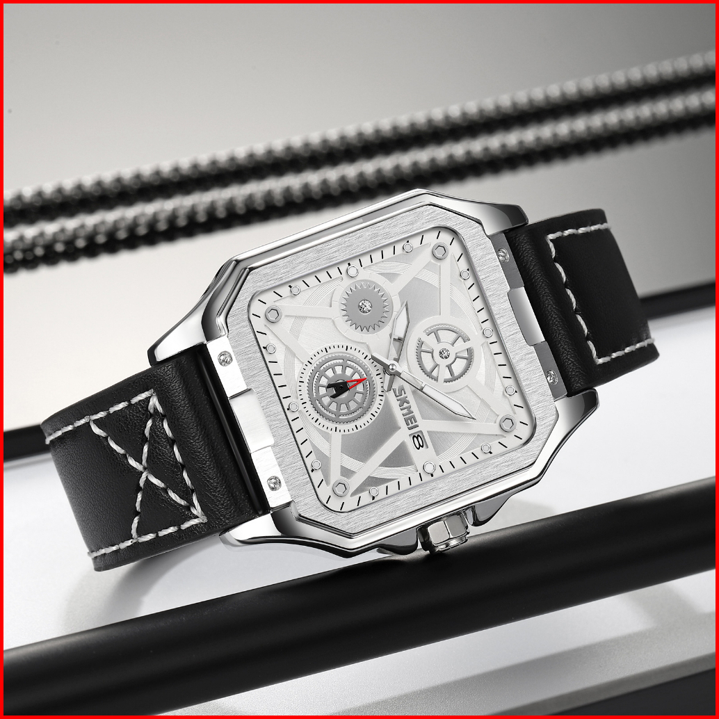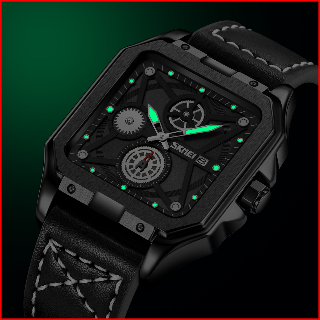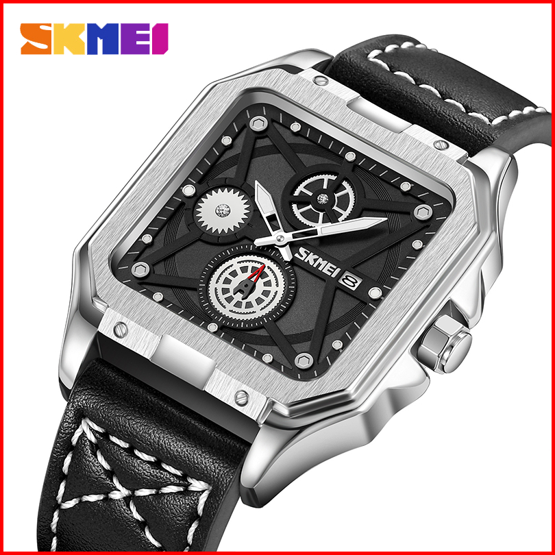 Skmei 9330 Jam Tangan Pria Analog Chronograph Tali Kulit Luminous Display Watchkite Wkos