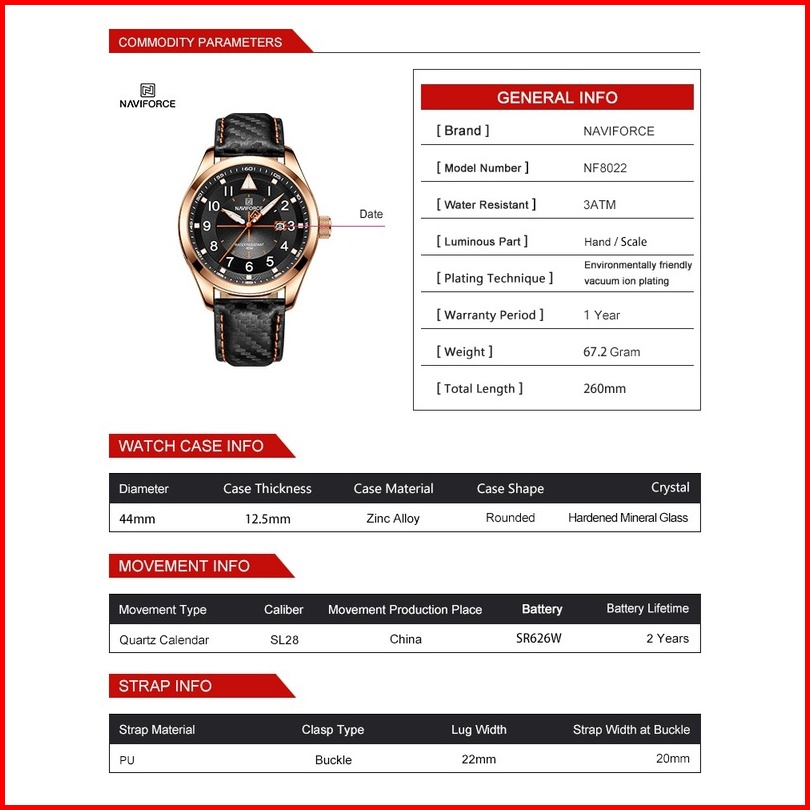 Jam Tangan Naviforce 8022 Nf8022 Anti Air Luminous Strap Kulit Jam Tangan Pria Original Garansi 1 Tahun Jam Tangan Origi