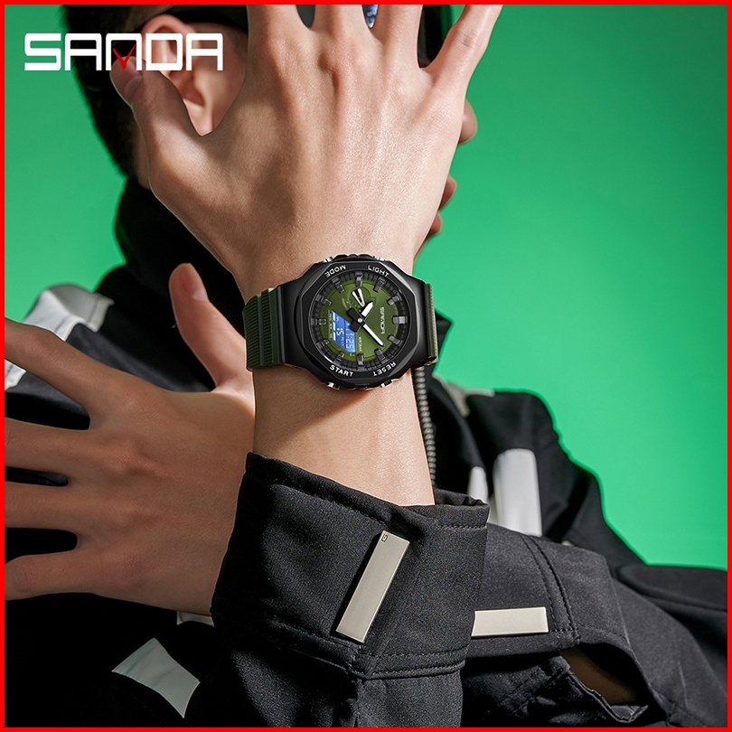 Sanda 3167 Jam Tangan Pria Wanita Digital Analog Sport El Backlight Tali Rubber Anti Air Currenos