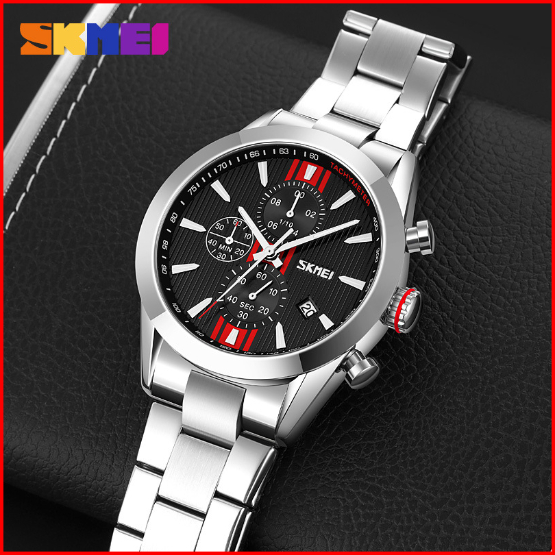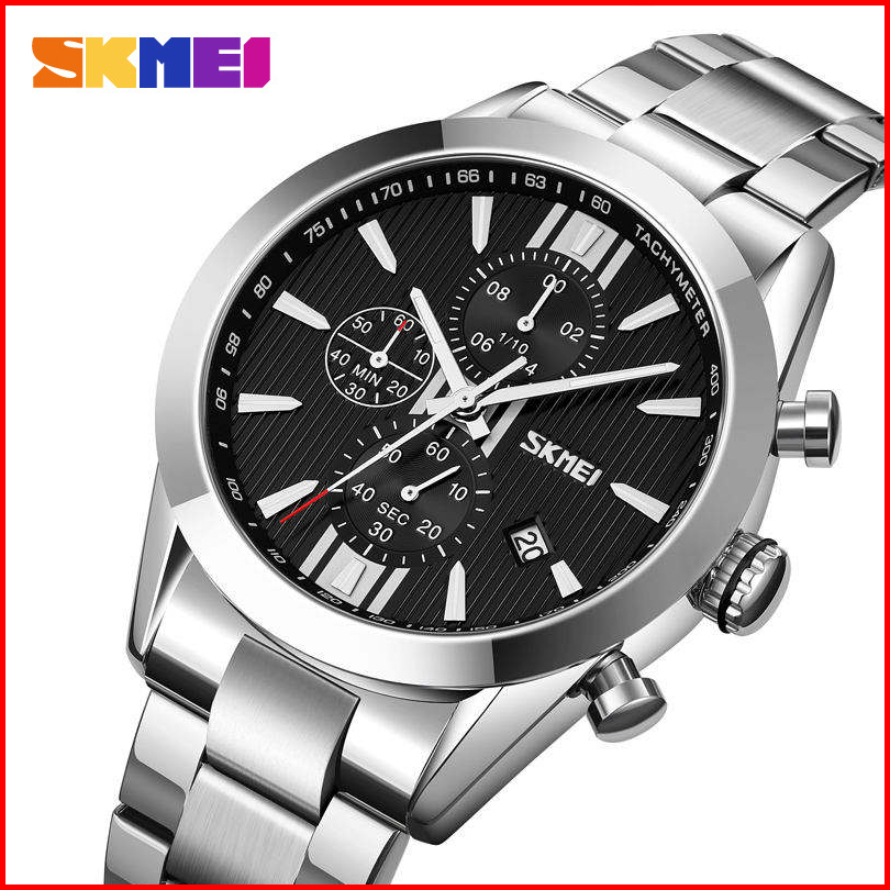 Skmei 9302 Jam Tangan Pria Analog Chronograph Tali Stainless Steel Mgos