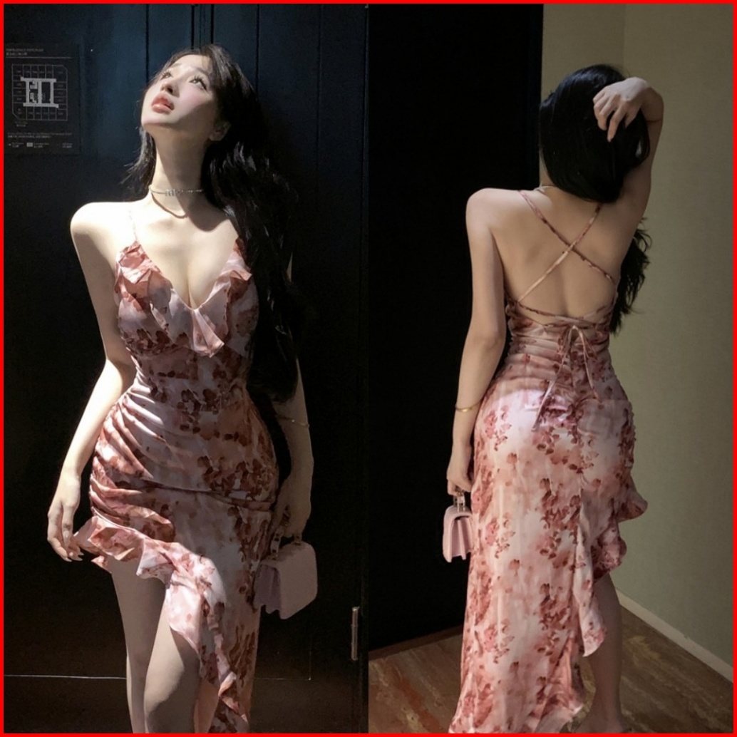 Midi Dress Terbaru 2025 Dress Pink Pantai Wanita Dress Korean Style Aesthetic Coquette Backless Bodycon Dress Big Size I