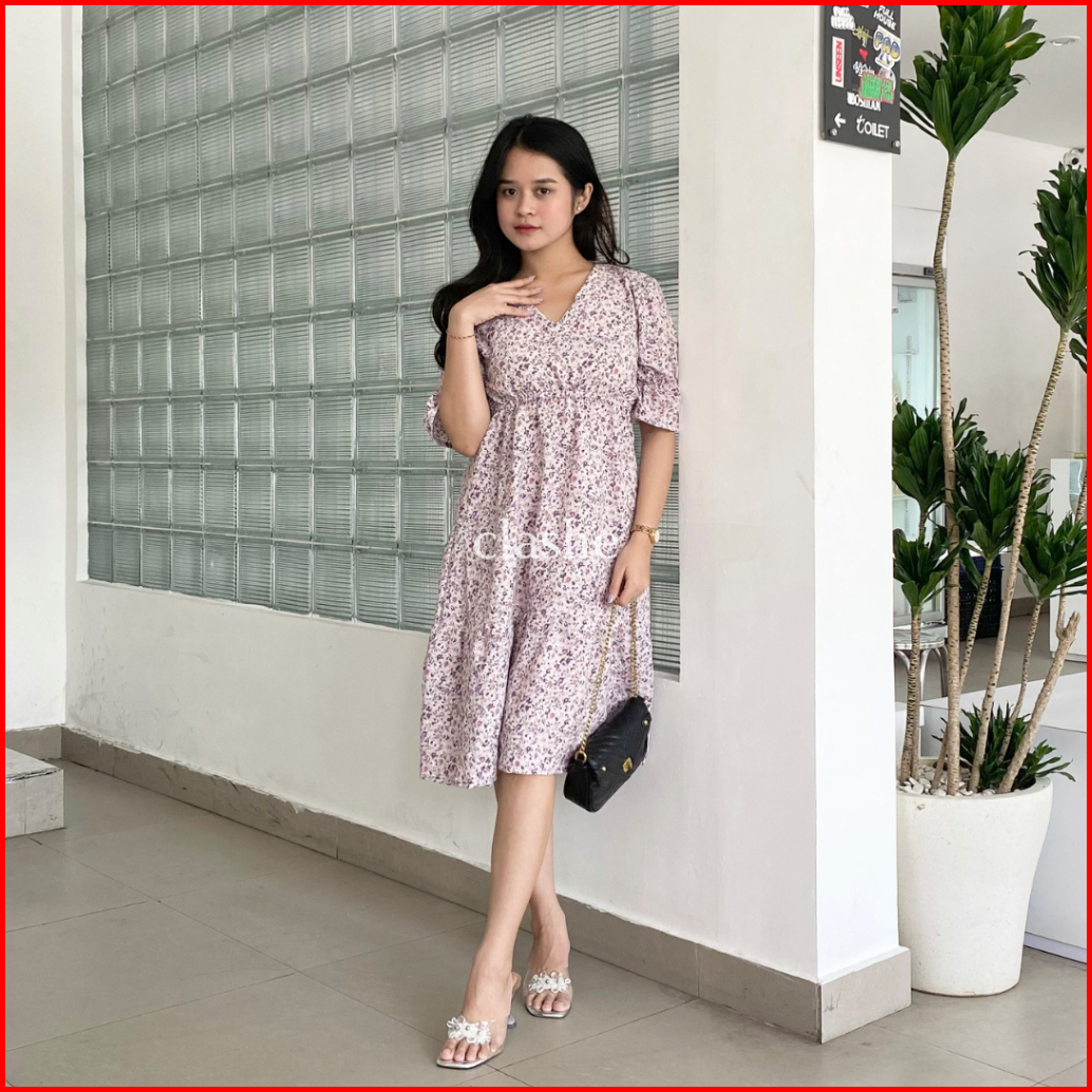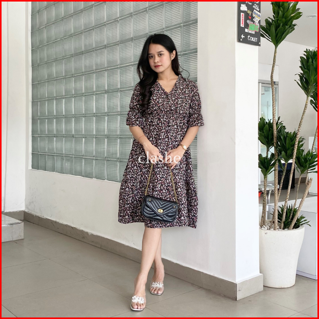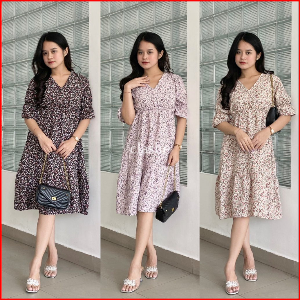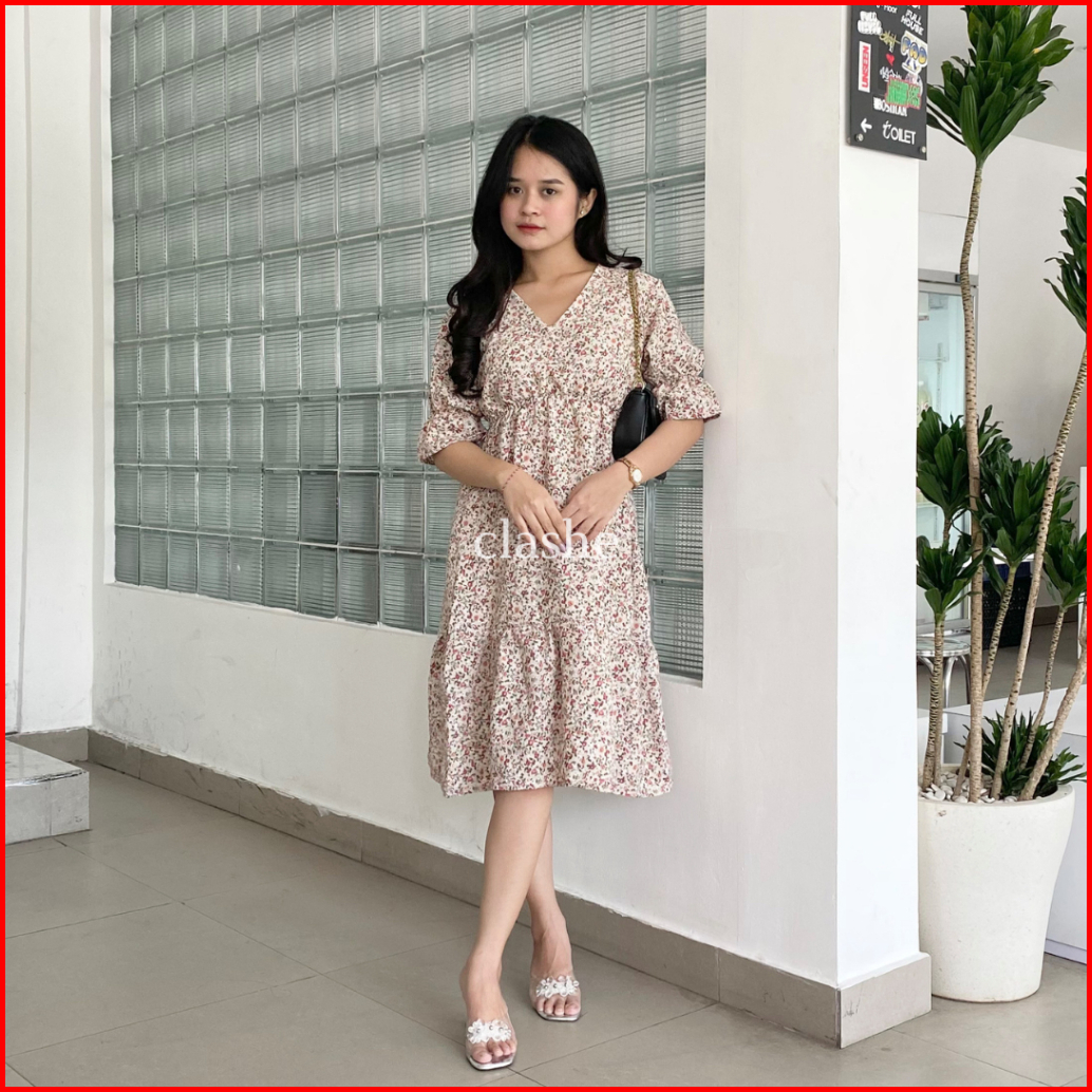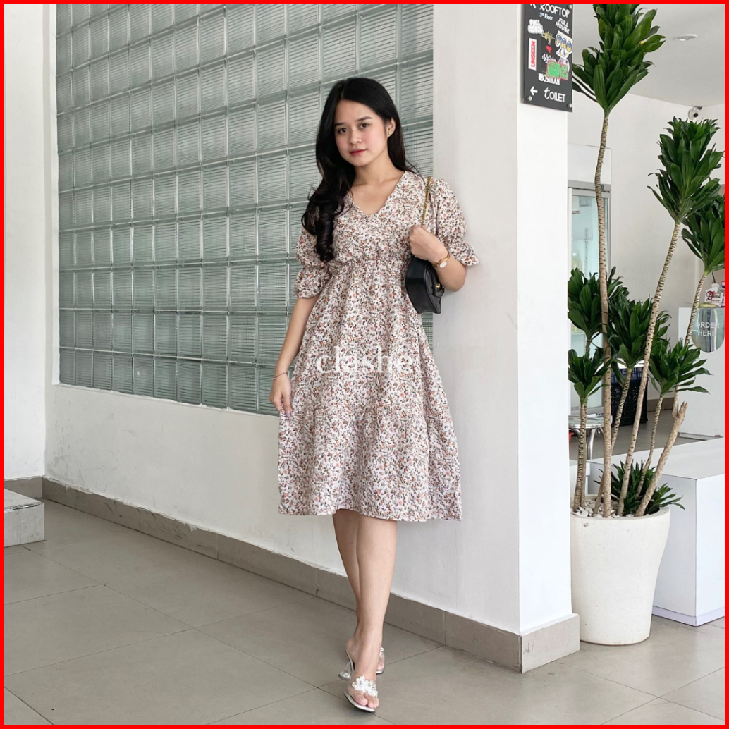 Hera Dress Gaun Motif Bunga Lengan Pendek Wanita Crinkle Airflow Anti Lecek Korean Style Terbaru Kekinian Ootd By Clashe