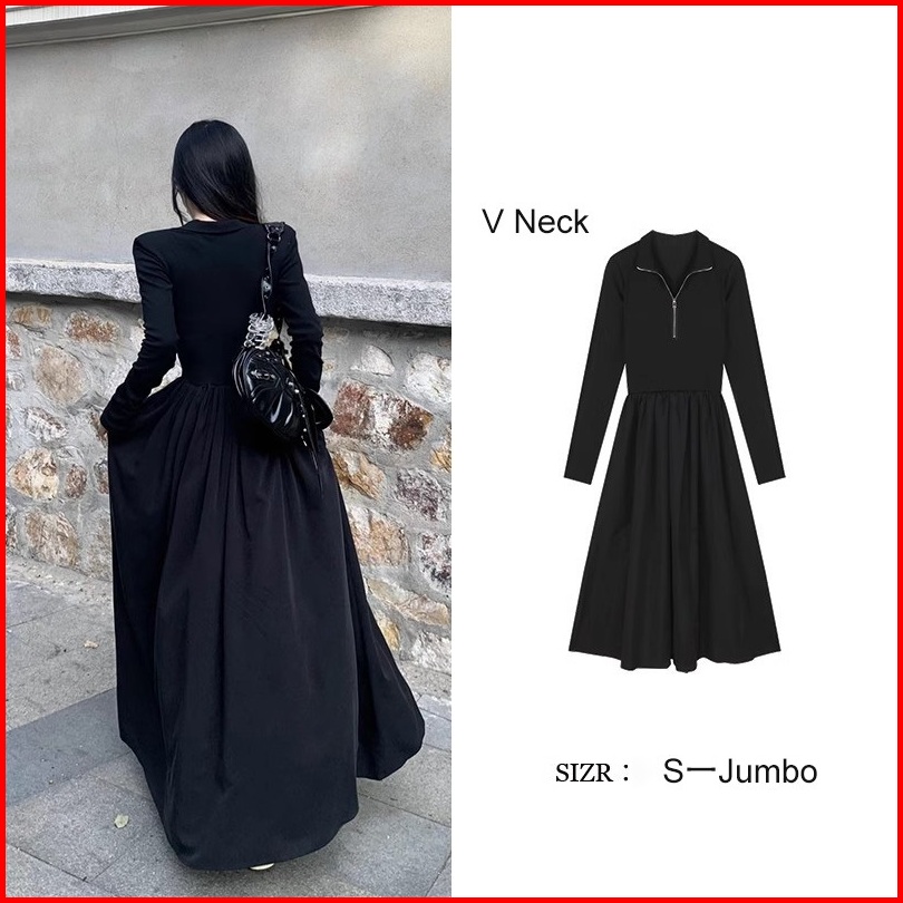Midi Dress Crinkel Polos Long Tunik Korean Style Dress Big Size Long Dress Terbaru 2024 Sexy Outdoor Holiday Picnic V Ne