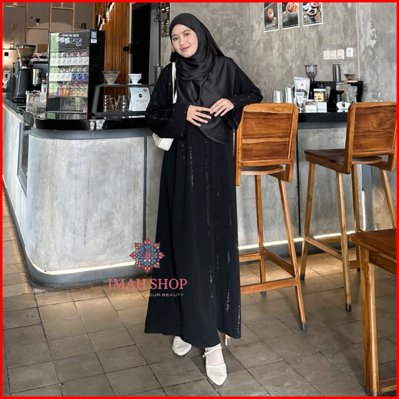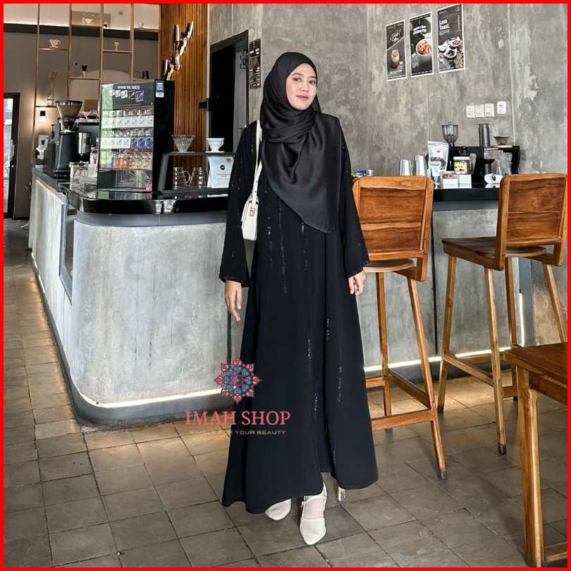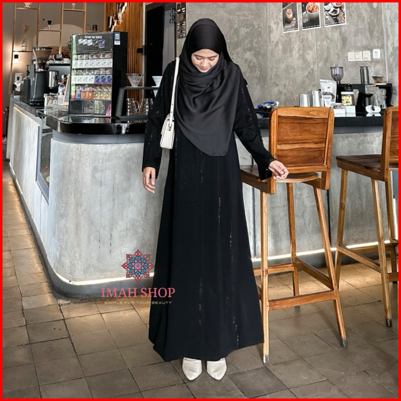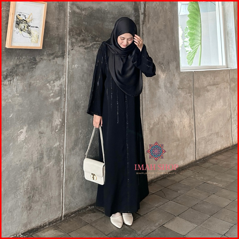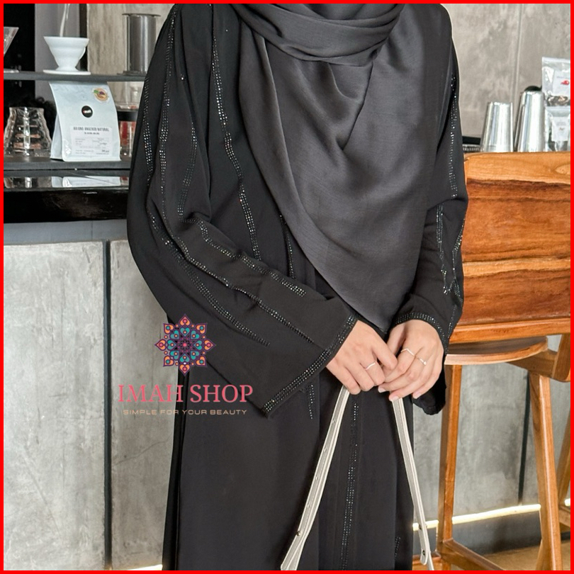 Abaya Hitam Turkey Gamis Syari Muslimah Bahan Jetblack Hitam Kombinasi Mata Swarovski Imah Shop Dress Arab Saudi 980