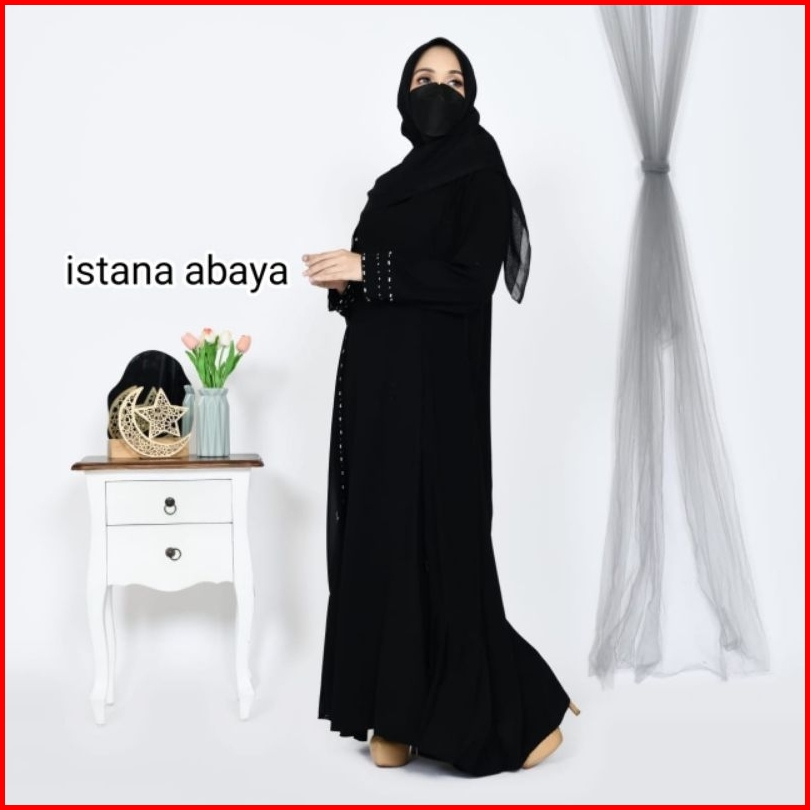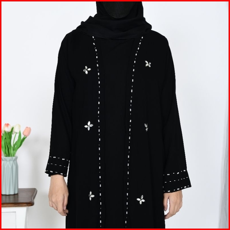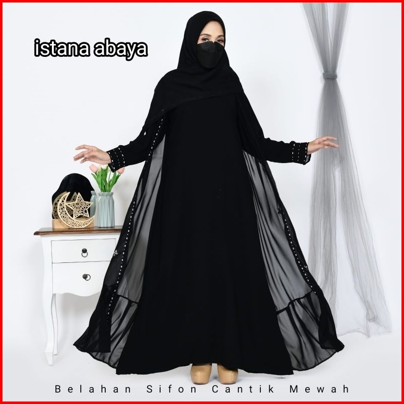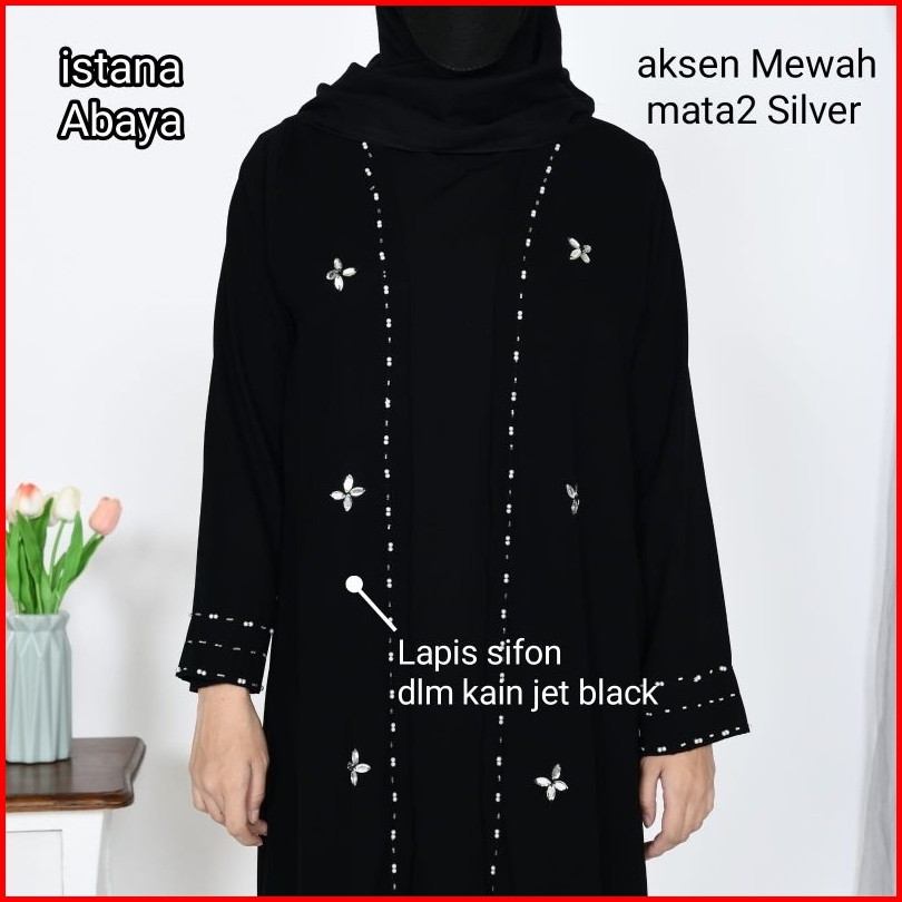 Abaya Larazeta Lapis Sifon Dpn Dg Mata2 Silver Kesan Mewah Cantik