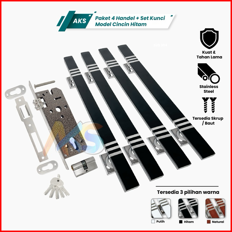 Paket Handle Pintu Rumah Minimalis 45cm Dan 33cm Fullset Body Kunci Pelor Tarikan Gagang Pintu Rumah Hendel Handel Pintu