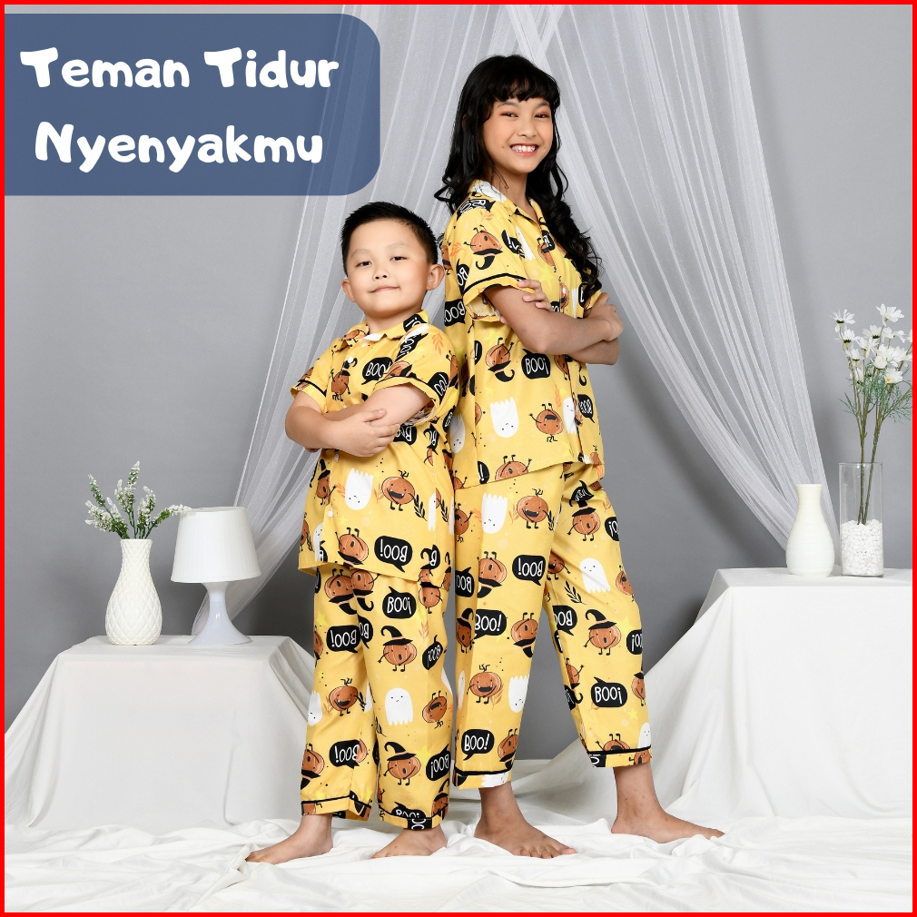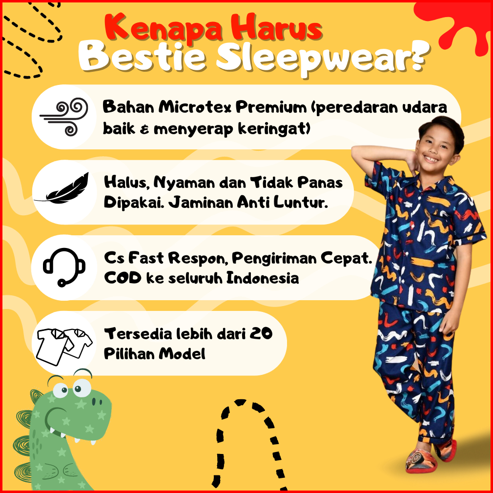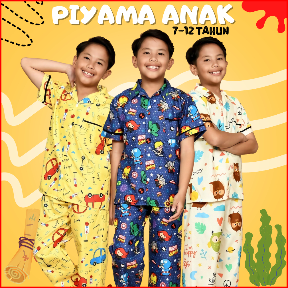 Baju Tidur Piyama Anak Laki Laki Setelan Umur 7-12 Tahun Lengan Pendek Celana Premium Adem