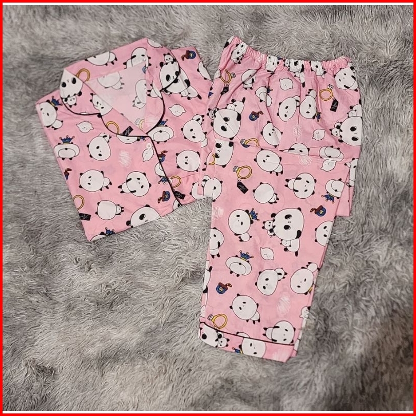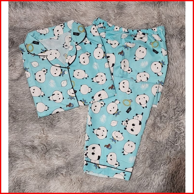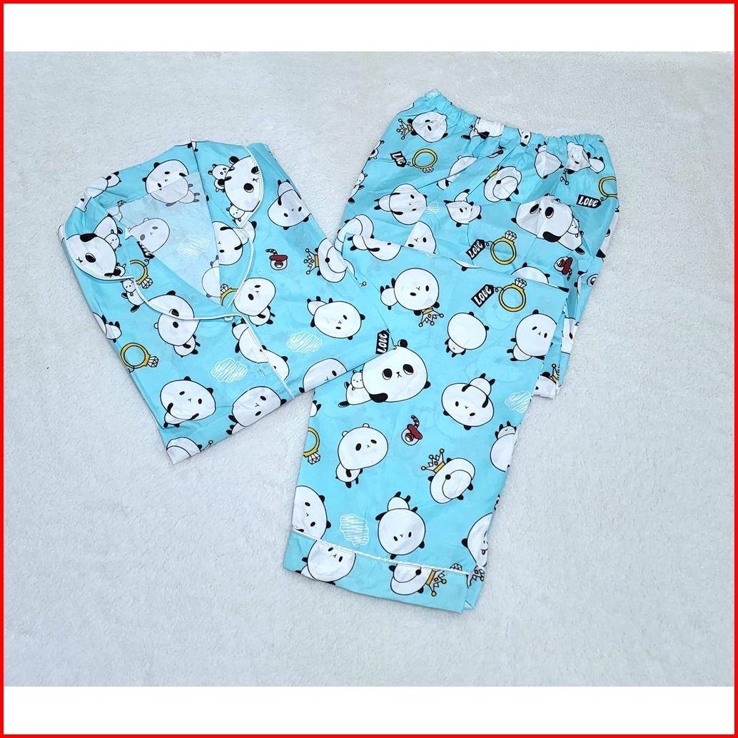 Setelan Baju Tidur Motif Panda Gemoy Piyama Wanita Cewek Kekinian