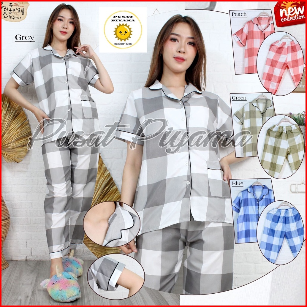 Baju Tidur Piyama Wanita Kotak Nona Motif Pajamas Cewek Dewasa Kekinian