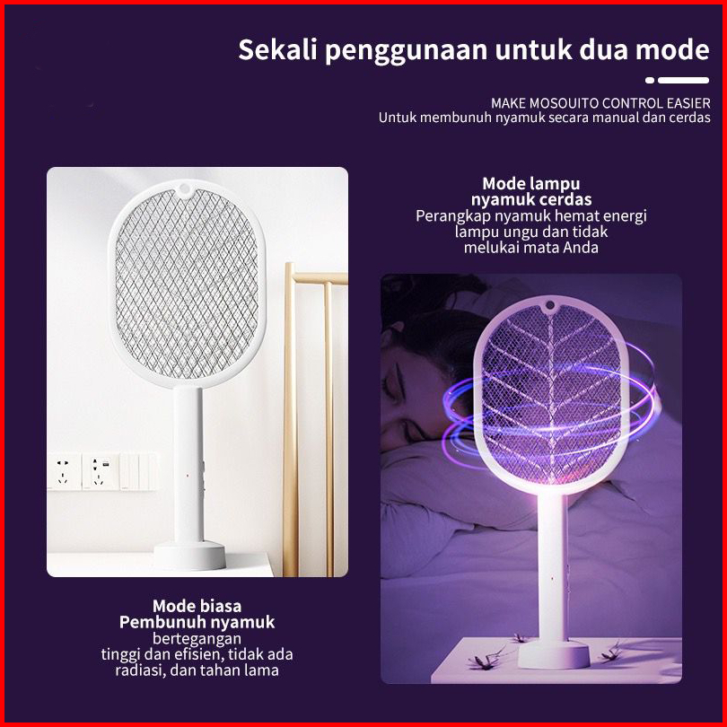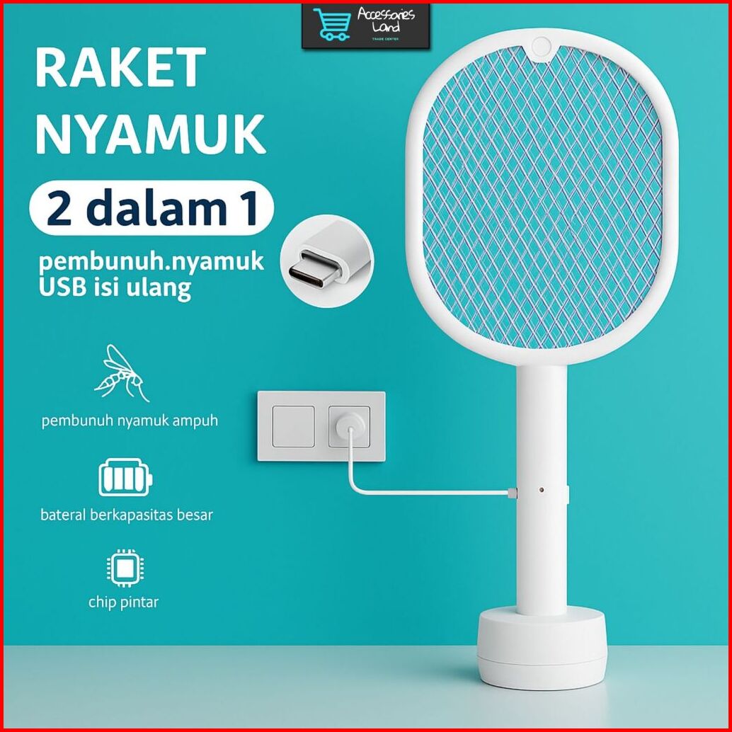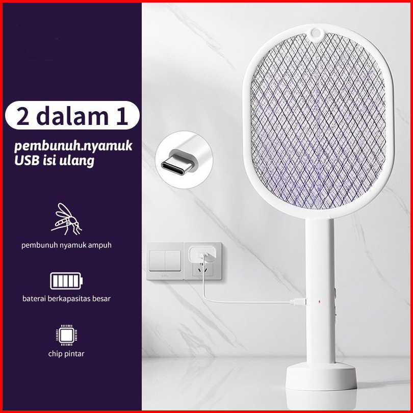 Raket Nyamuk Elektrik Cas Tahan Lama Murah Awet Charger Usb 2 In1 Raket Nyamuk Standing