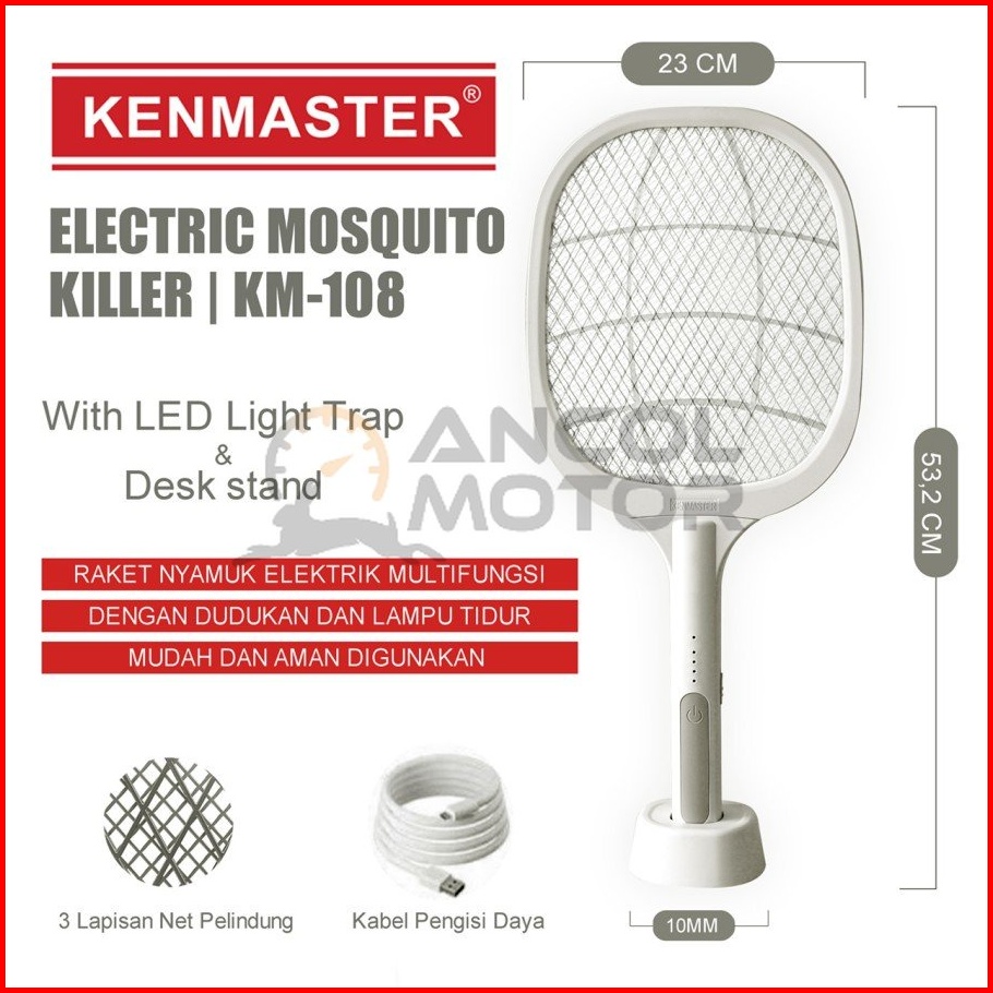 Kenmaster Raket Nyamuk Listrik Km-108 Smart Control Electric Lampu Led Sinar Uv
