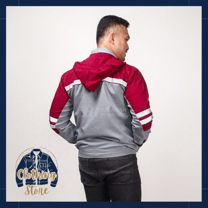 Wearpack Safety Jaket Hoodie Weather Shield Warna Merah Maroon Kombinasi Abu abu