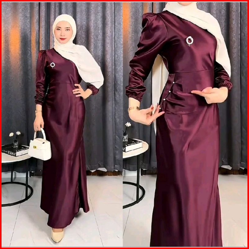 Elora Dress Satin Silk Premium Baju Fashion Wanita Kondangan Wisuda Couple Muslimah