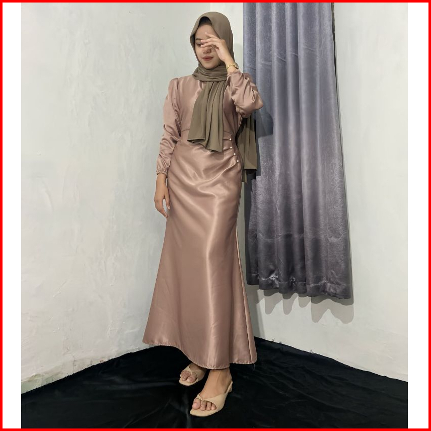 Elora Dress Satin Silk Premium Baju Fashion Wanita Kondangan Wisuda Gamis Terbaru